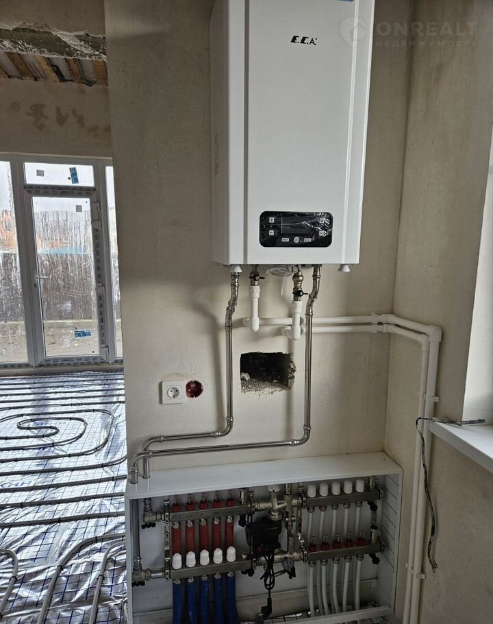 -Смонтированна система отопления коллекторная+тёплый пол через утеплитель 6 контуров(кроме спальни).Котёл газовый 24Квт,дорогой, надёжный.