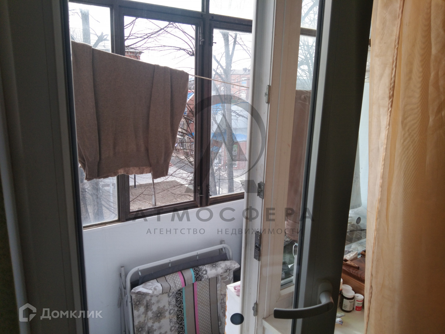 Балкон застеклен , с прекрасным видом на город