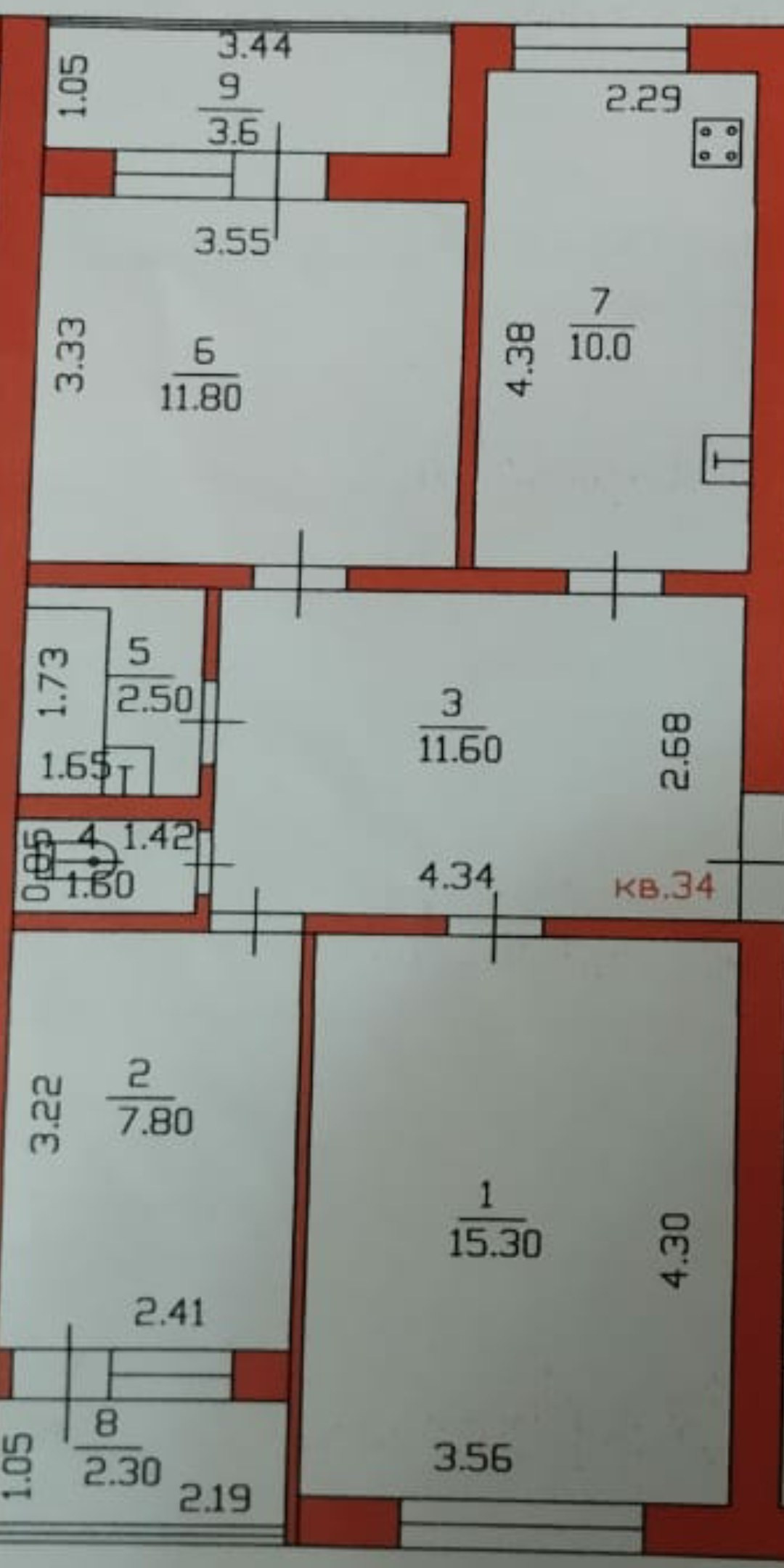Жилая площадь 34.9 м2
