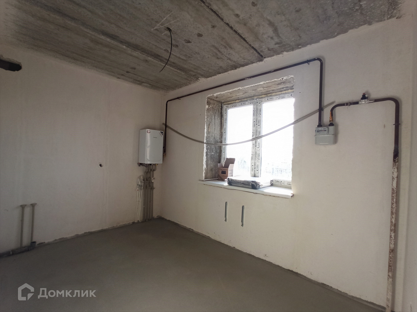 Выполнена предчистовая отделка: залит ровный бетонный пол и отшпаклеваны стены