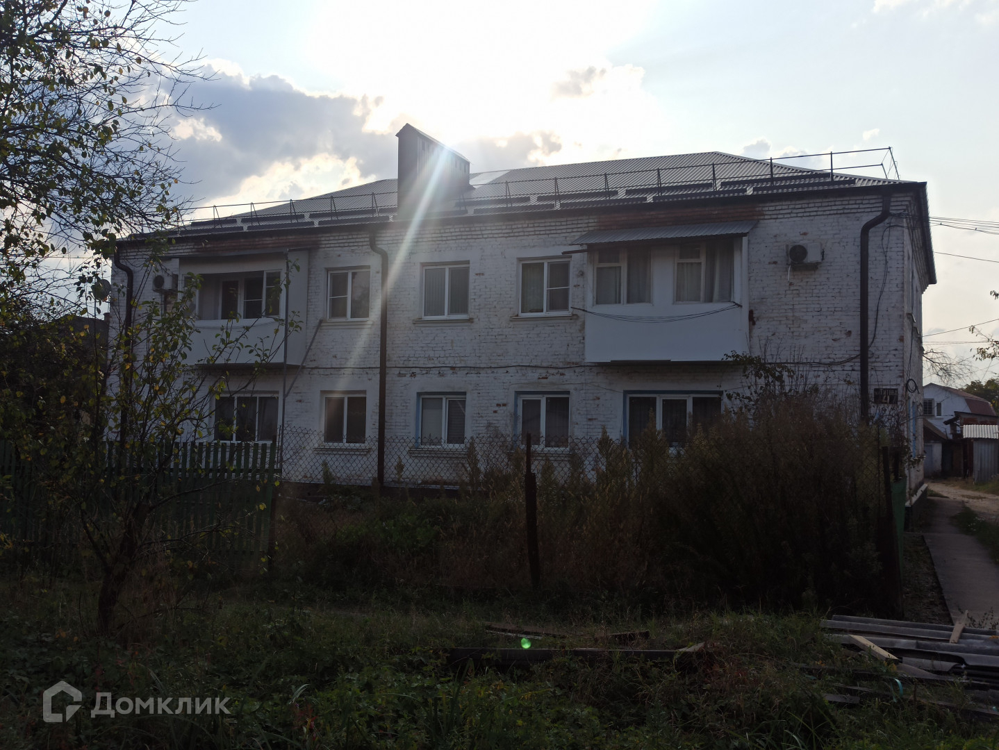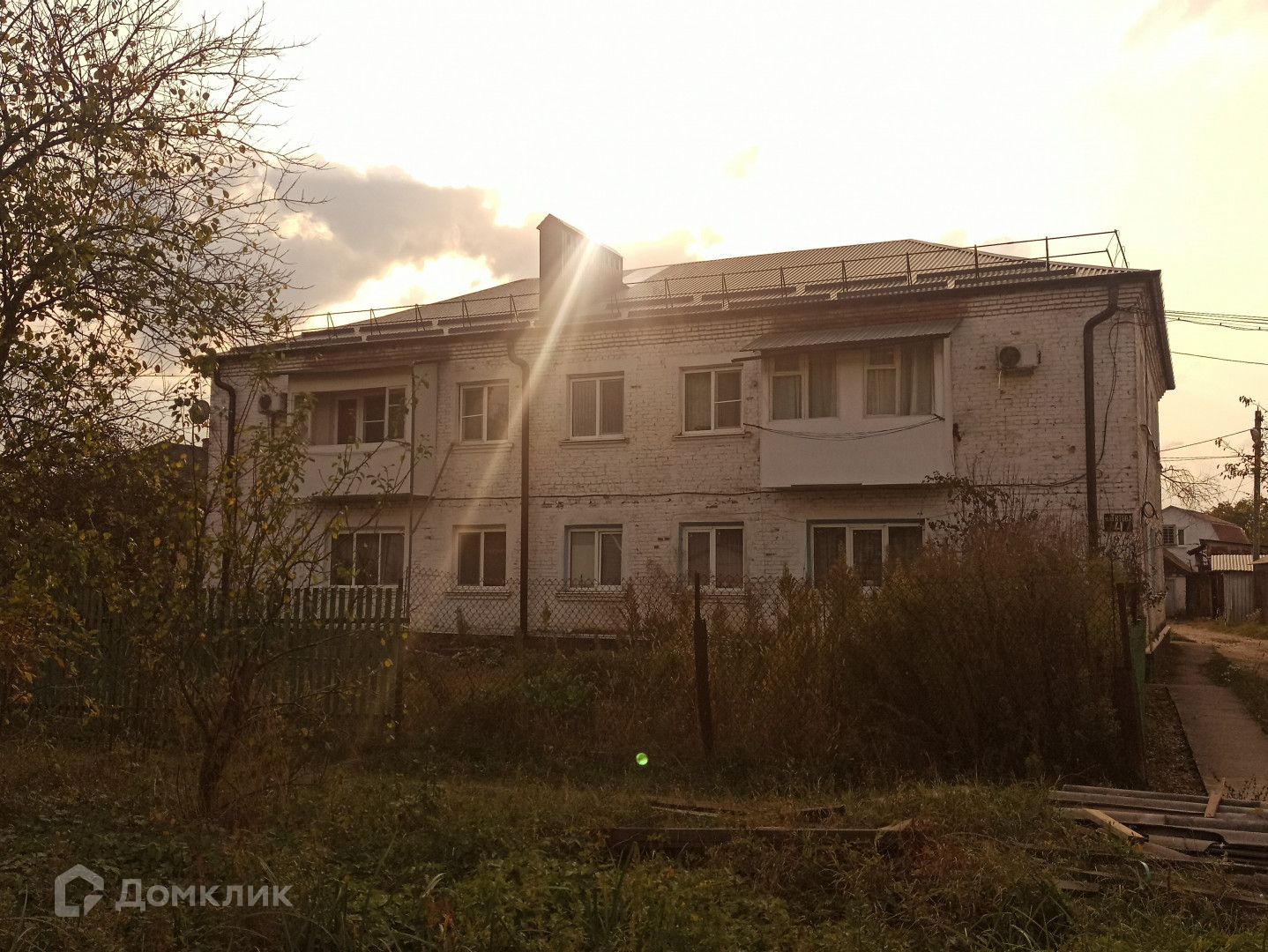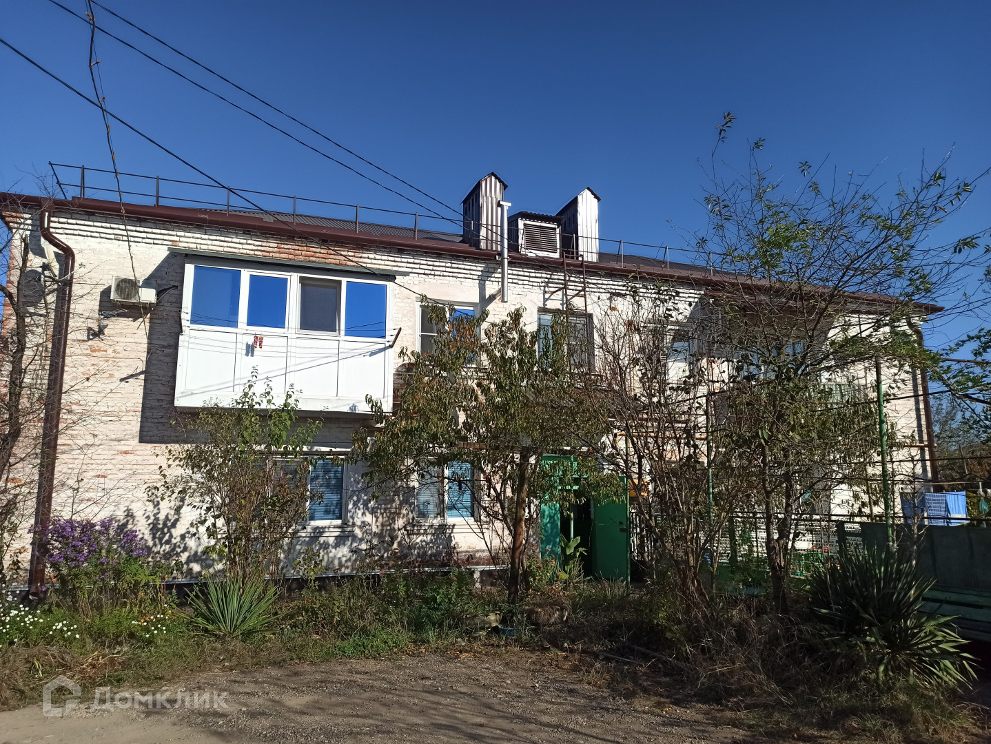 Дружный восьмиквартирный дом с новой крышей из металлопрофиля ждет жильцов в квартиру на втором этаже. Во дворе вас ждут лавочки для посиделок с соседями, вокруг которых жильцы высаживают цветы и расставляют кашпо с растениями.