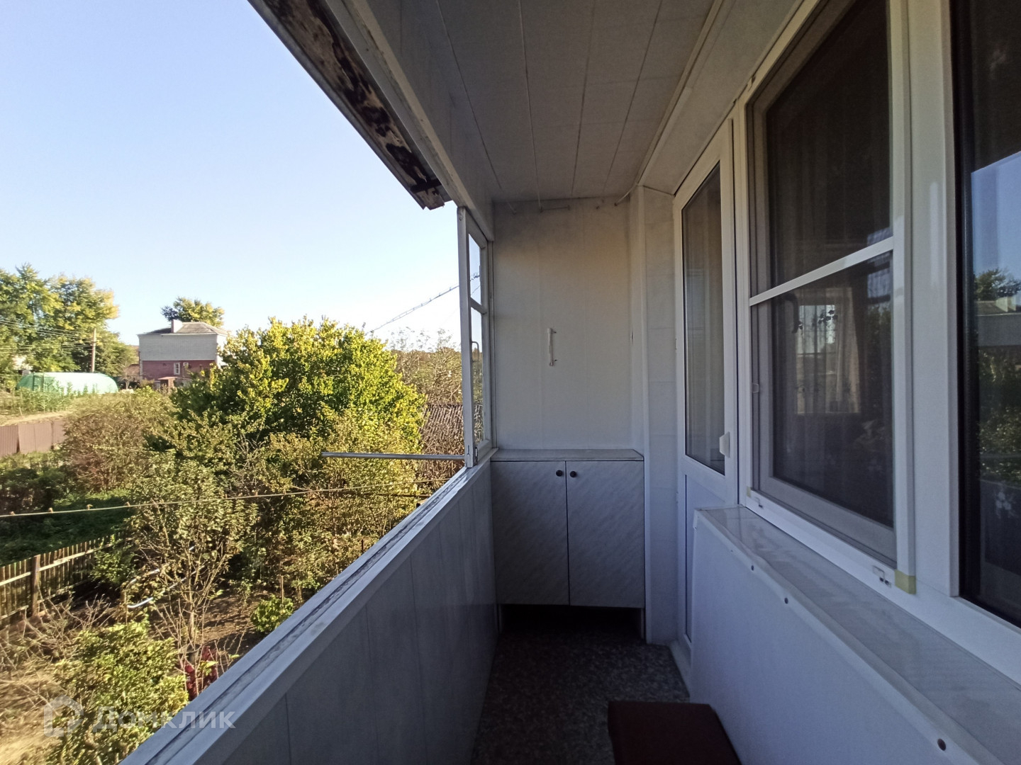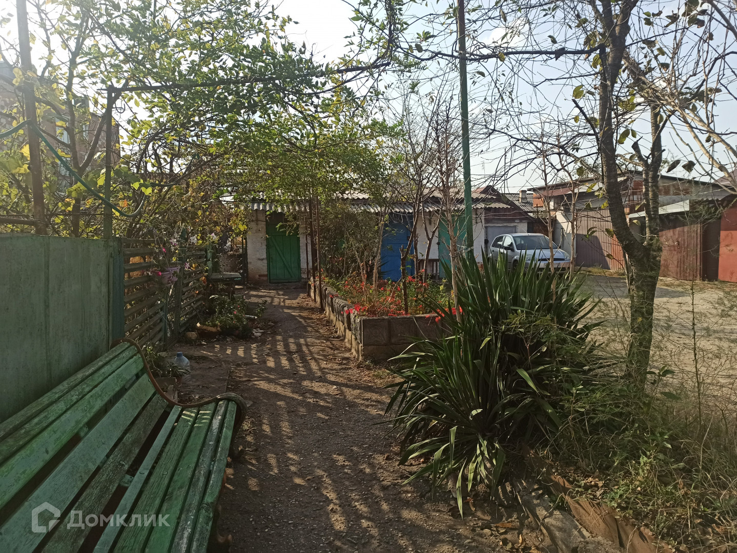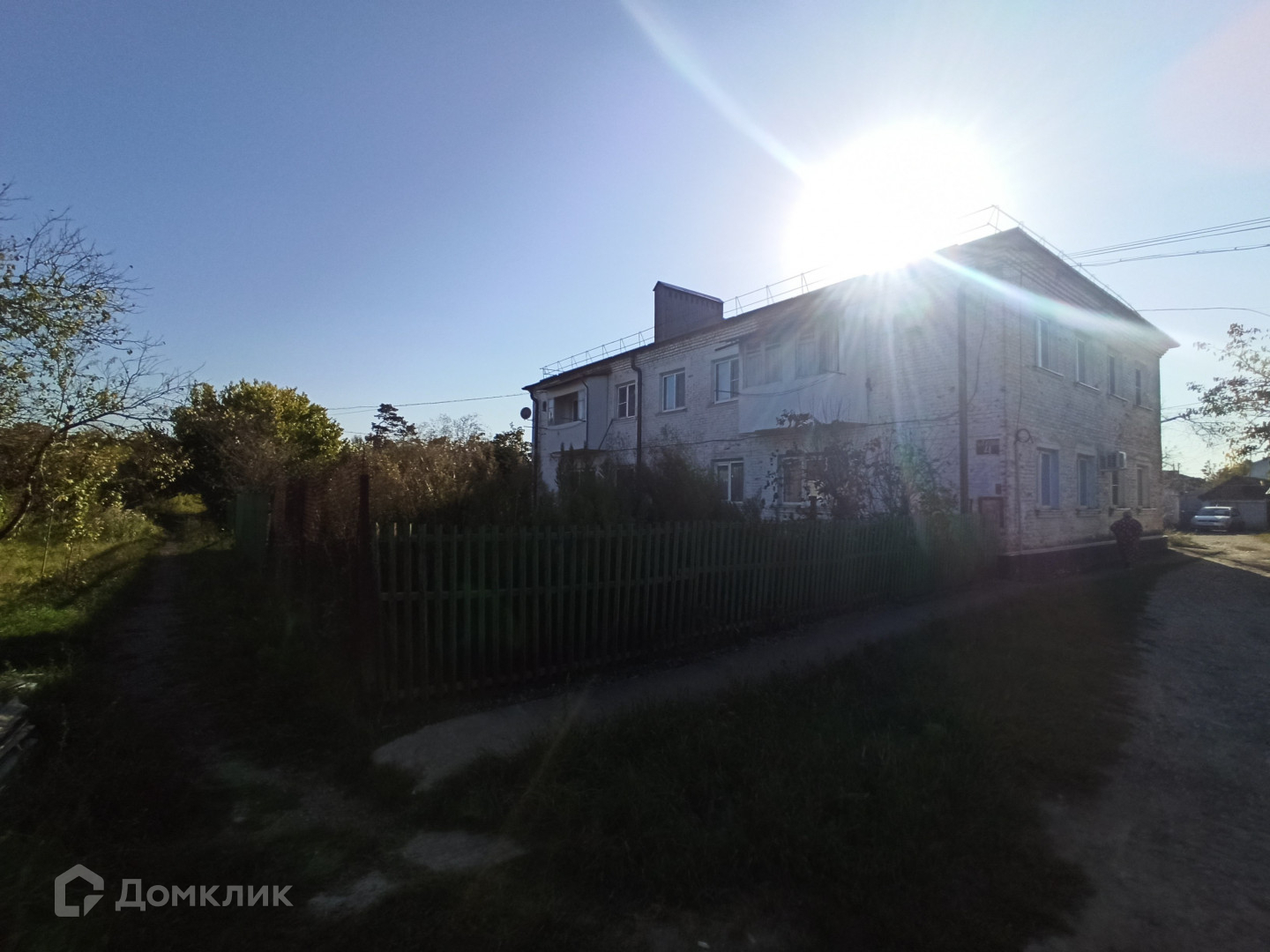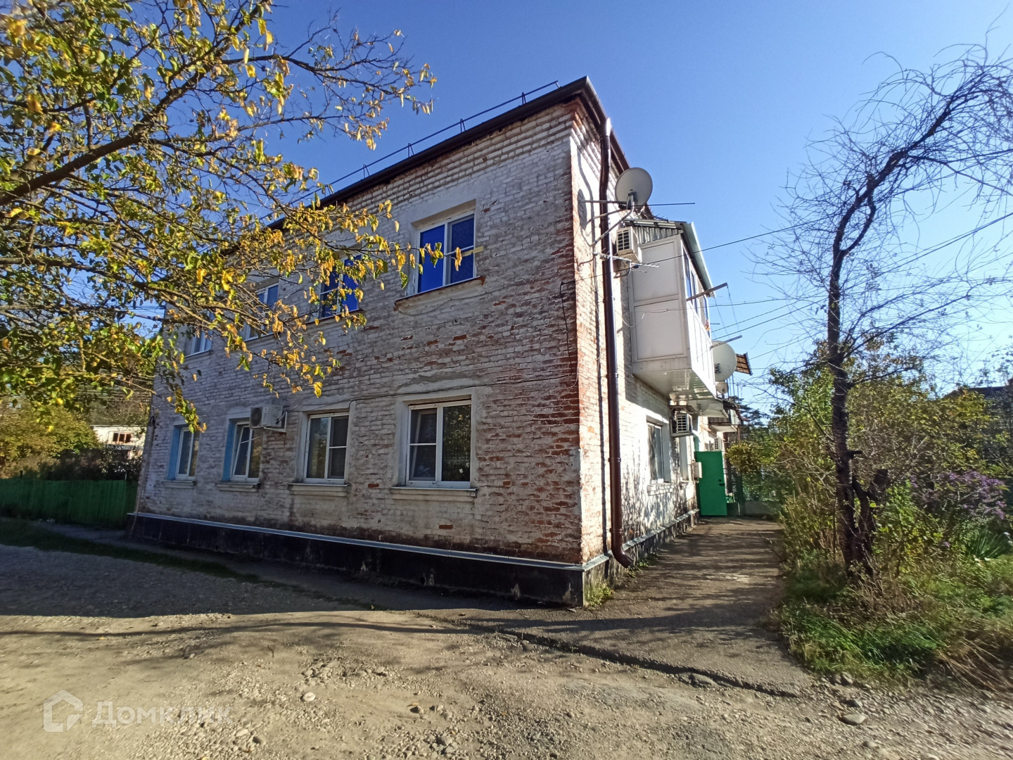 Дружный восьмиквартирный дом с новой крышей из металлопрофиля ждет жильцов в квартиру на втором этаже. Во дворе вас ждут лавочки для посиделок с соседями, вокруг которых жильцы высаживают цветы и расставляют кашпо с растениями.