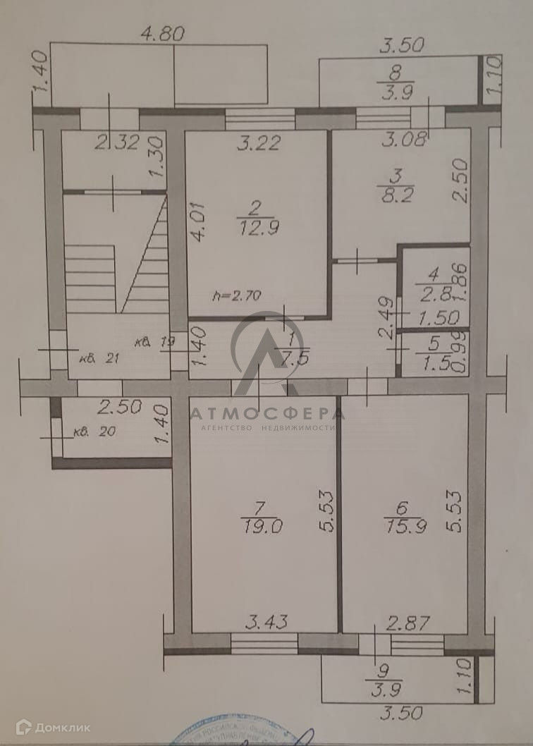 Высота потолков 2.7 м