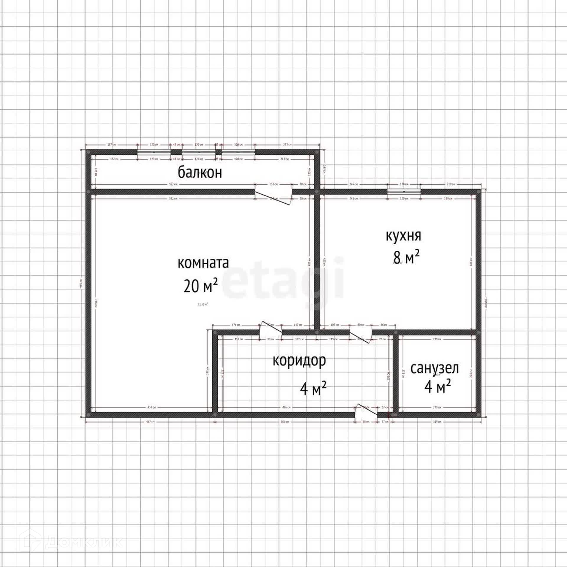 Общая площадь 32.8 м2
