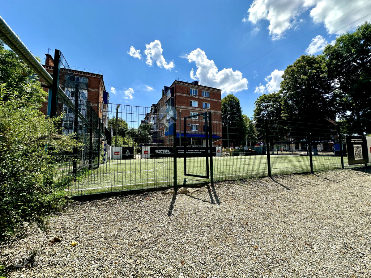Двор закрытого типа, имеется большая спортивная площадка для футбола, парковочные места для автомобиля.
