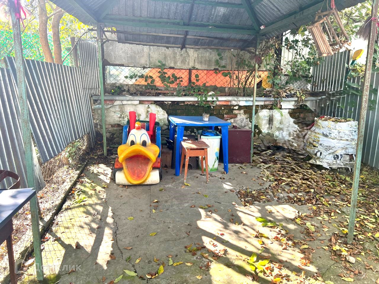 На придомовой территории имеется металлический гараж, сарай, закрытая беседка, огород.