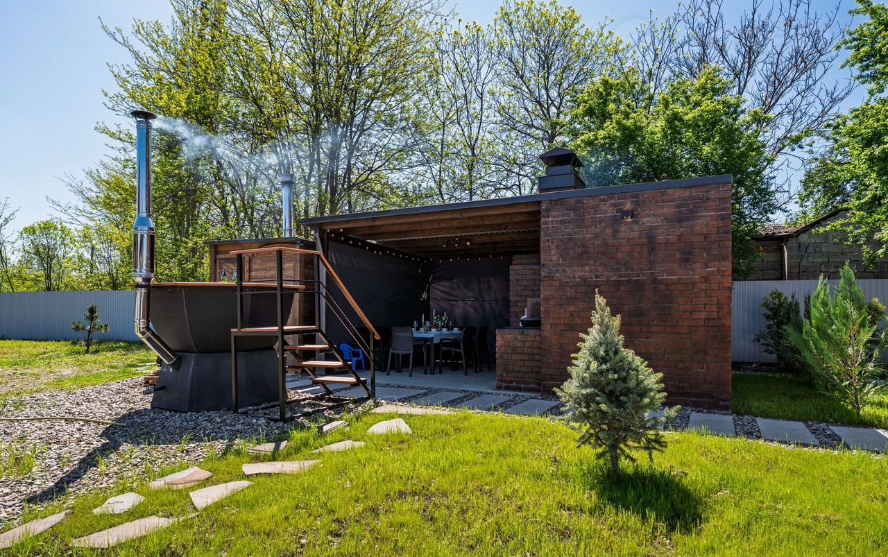 На территории крытая парковка, мангальная зона, чан, сауна!