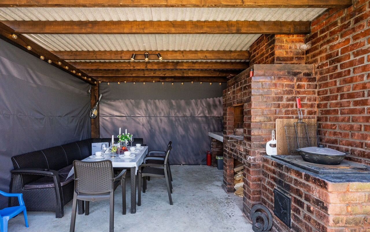 - Беседка - мангал(дрова), раковина , электроплита, посуда и все необходимое для приготовления еды. Включена.