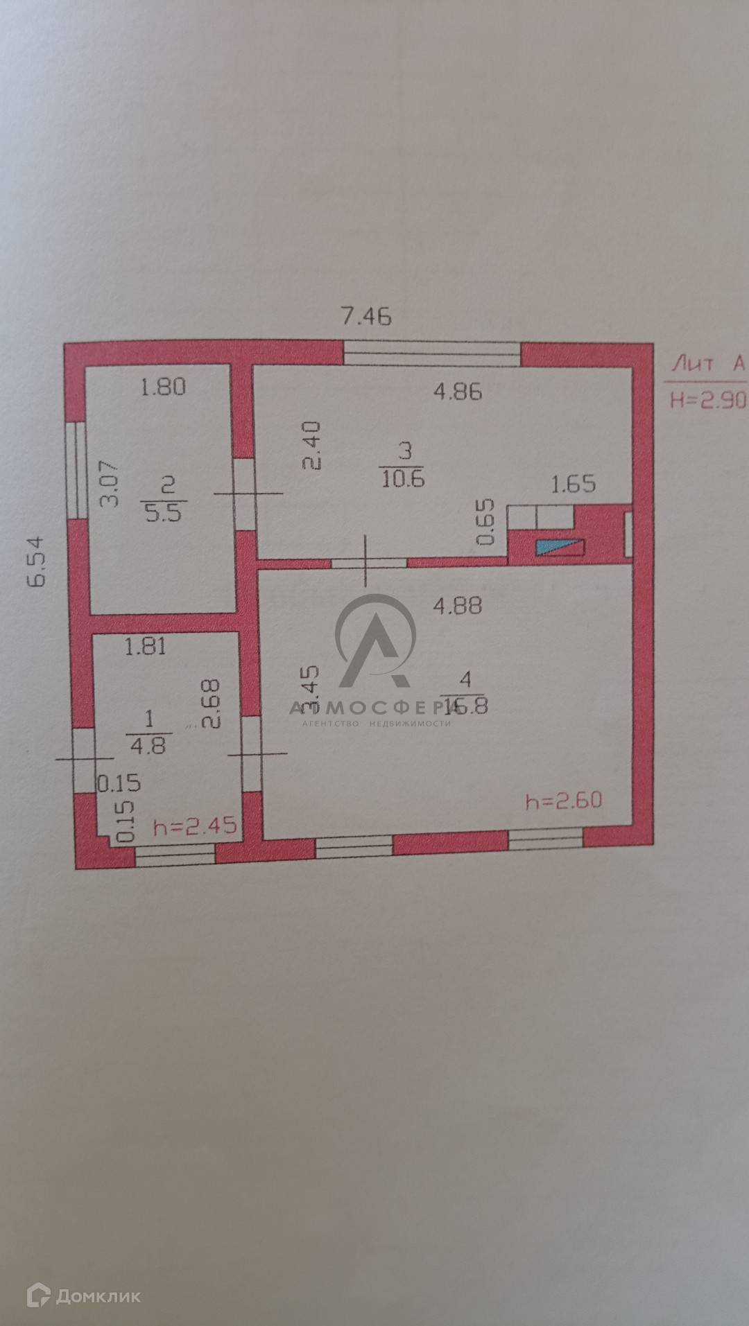 Высота потолков 2.6 м