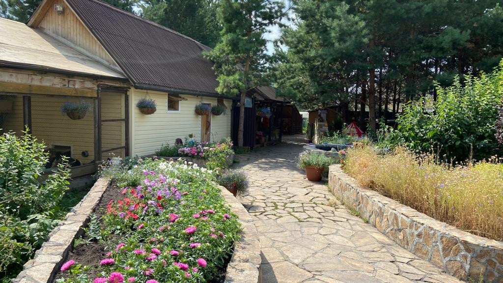 В лесу сделан небольшой искусственный пруд, на дне которого уложена каучуковая толстая пленка, которая не бояться сильных морозов, берега пруда обложены валунами, так же есть большое помещение для хранения сена и не большая вторая крытая мастерская с нужным оборудованием.