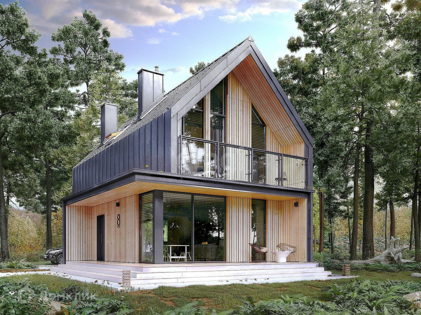 Современная дача с панорамными окнами.