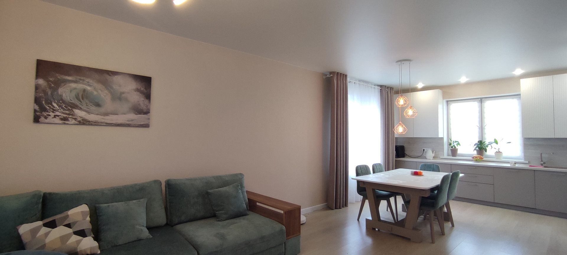В доме энергоэффективная система «Теплые полы». Отопление водяное - нагрев осуществляется от газового котла (есть резервный электрокотел). Часть окон расположено на юг, восток и запад - поэтому в доме светло и солнечно целый день, с раннего утра до позднего вечера.