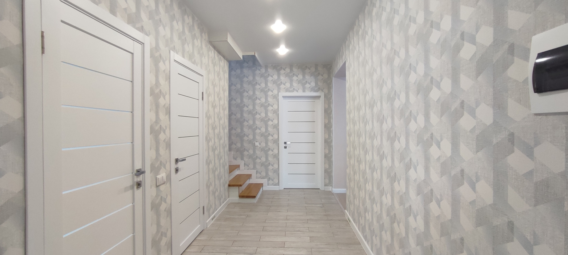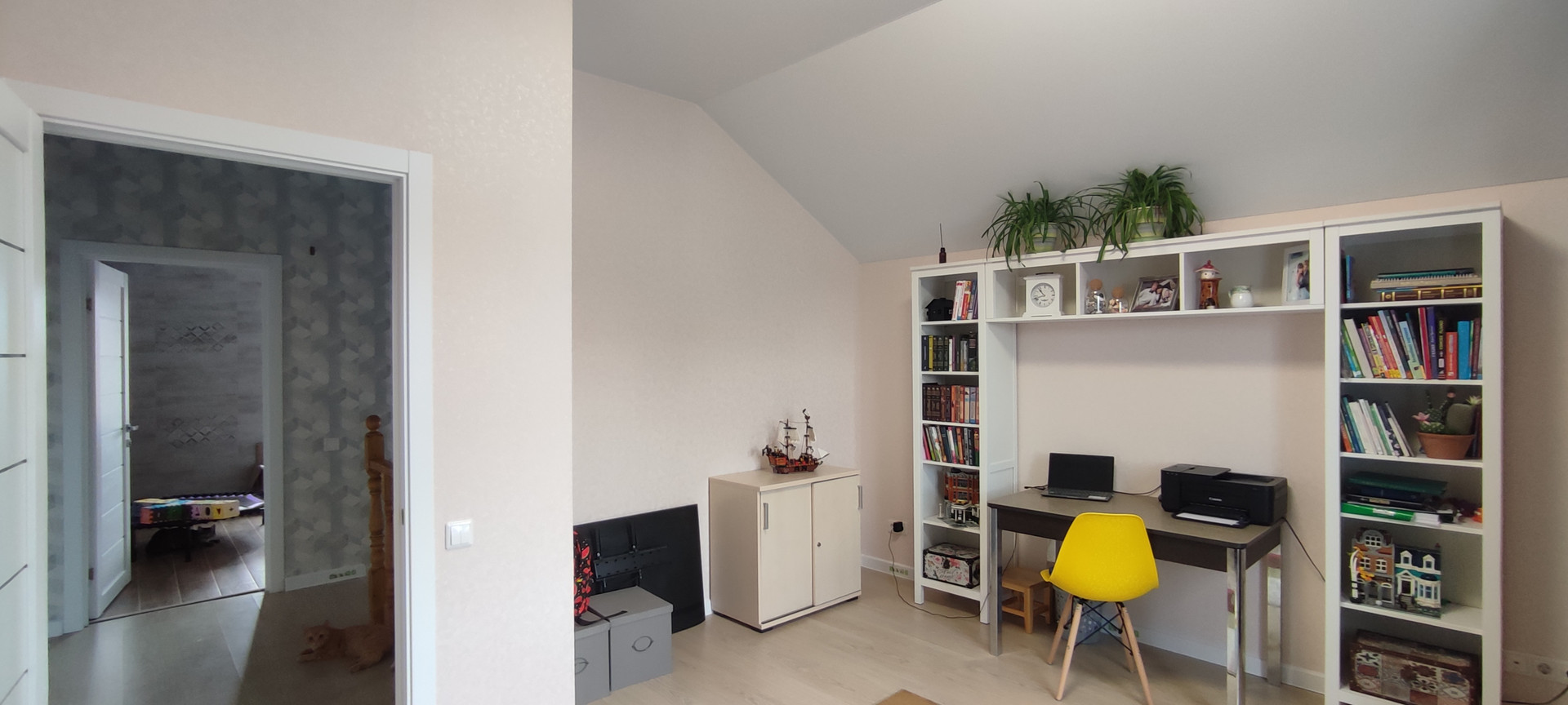 В доме 12 помещение из них 5 жилых комнат:  4 спальни, гостиная с кухонной зоной, 2 санузла, терраса, котельная - бойлерная и тамбур-прихожая. Тамбур теплый. Ванная на 1-м и на 2-м этажах.