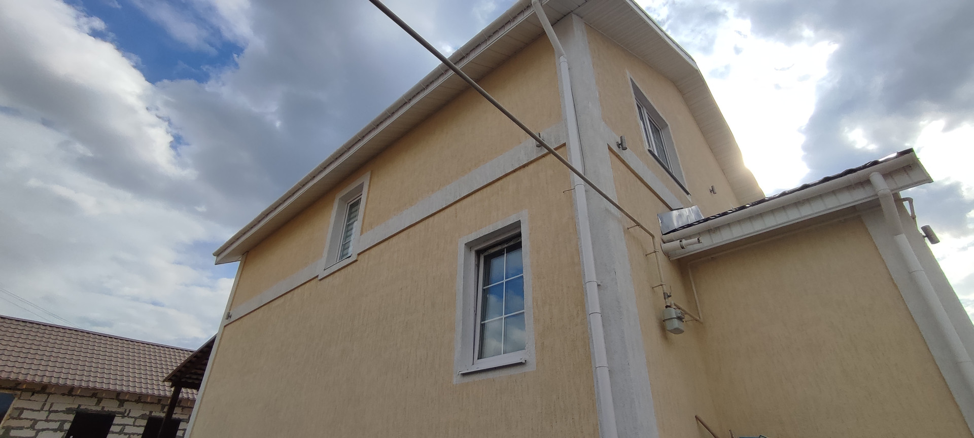 Скважина (60 метров), септик-дренаж (8 кубов) и горячая вода подключены к коммуникациям дома. Дом полностью благоустроен продаётся с мебелью и сантехникой. Строили для себя не на продажу, просто изменились обстоятельства.  При строительстве использованы современные качественные материалы: натяжные потолки (Бельгия), ламинат (Немецкий), обои (Итальянские), большие пластиковые окна (изготовлены по Австрийской технологии), на входе стальная сейф-дверь.
