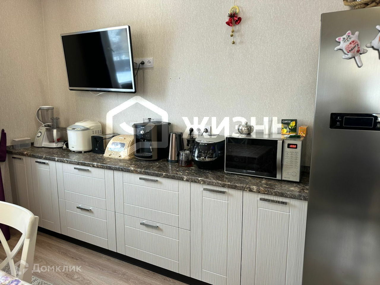 Встроенная мебель входит в стоимость и остается новым собственникам. Остальная мебель и техника - по договоренности.