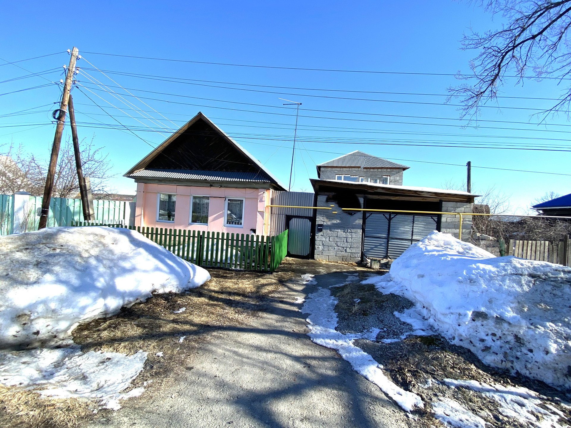 продам 2 дома на одном земельном участке, кадастровый номер участка:   66:33:0101009:207 первый дом- материал стен бревно, окна пластиковые, 4 комнаты, газ, котел отапления газовый, скважина, в доме тепло, комнаты светлые, чистые, второй дом - материал стен пеноблок, окна пластиковые, под черновую отделку, 2 этажа, эл-во в дом заведено, можно достраивать новый дом и жить в старом, рядом магазины, остановки, детский сад, школа.торг уместен.