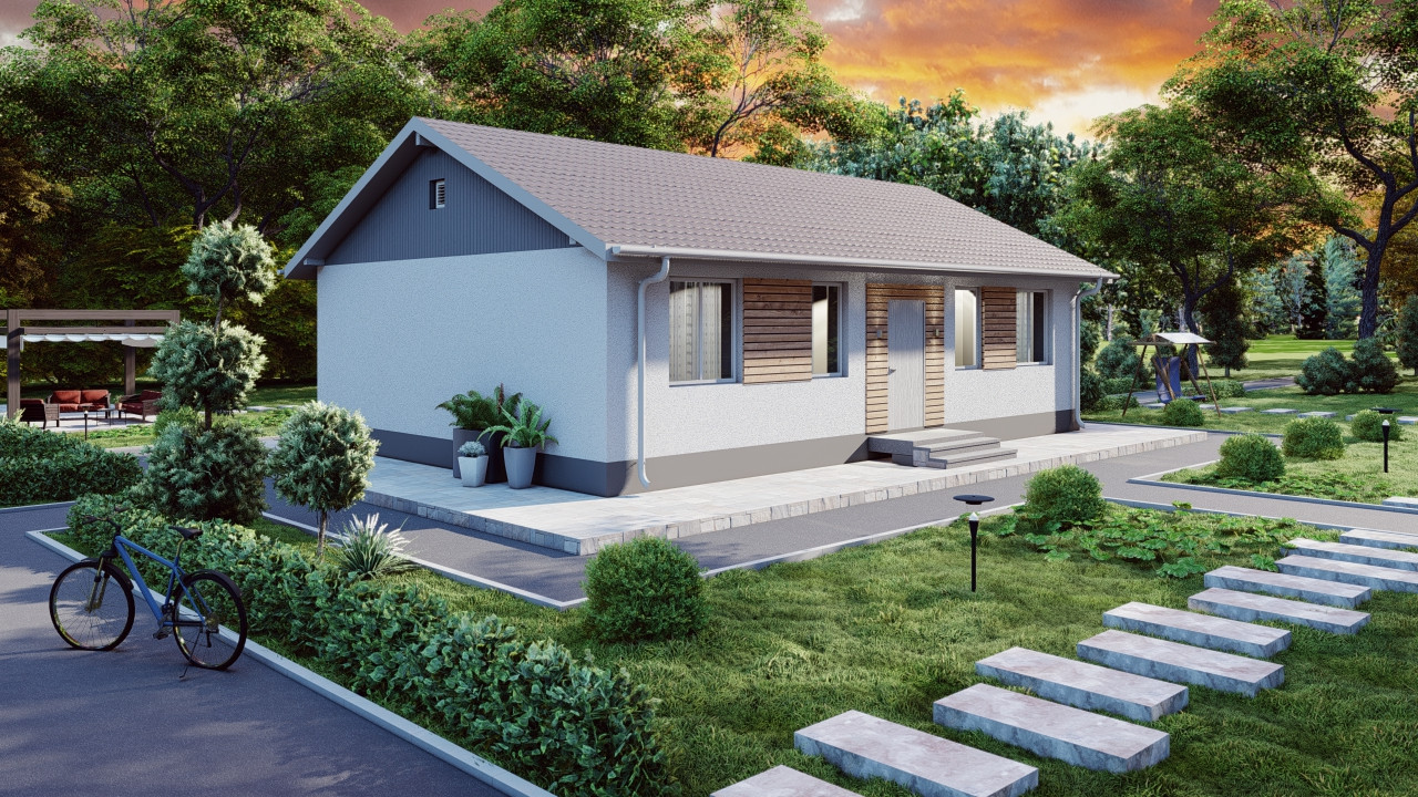 Этот уютный одноэтажный загородный дом — это идеальное место для отдыха и релаксации в окружении природы. Входя в дом, вы оказываетесь в просторном зале с высокими потолками и обилием естественного света, создающим атмосферу простора и уюта. Здесь вы можете устроить приятные вечера в кругу семьи или проводить время в компании друзей.