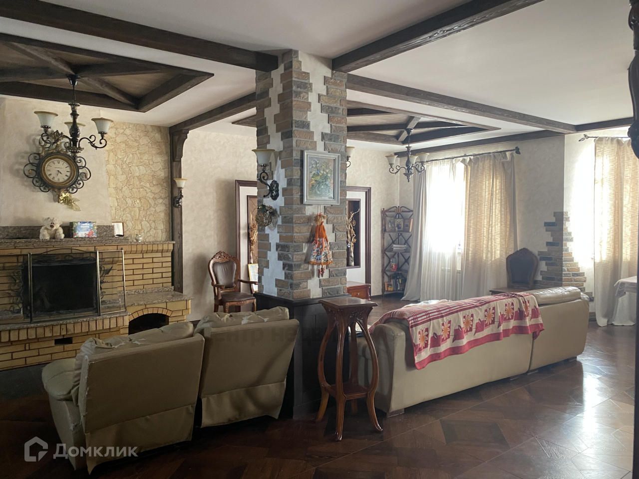 Коттедж 519 кв.м. с мебелью. Дом удачно расположен на пригорке - красивый вид на город, сделаны два заезда - со стороны улицы Парковая и со стороны трассы (отделена лесополосой, шума нет), отгорожен шлагбаумом. Высажена дубовая аллея к дому.
