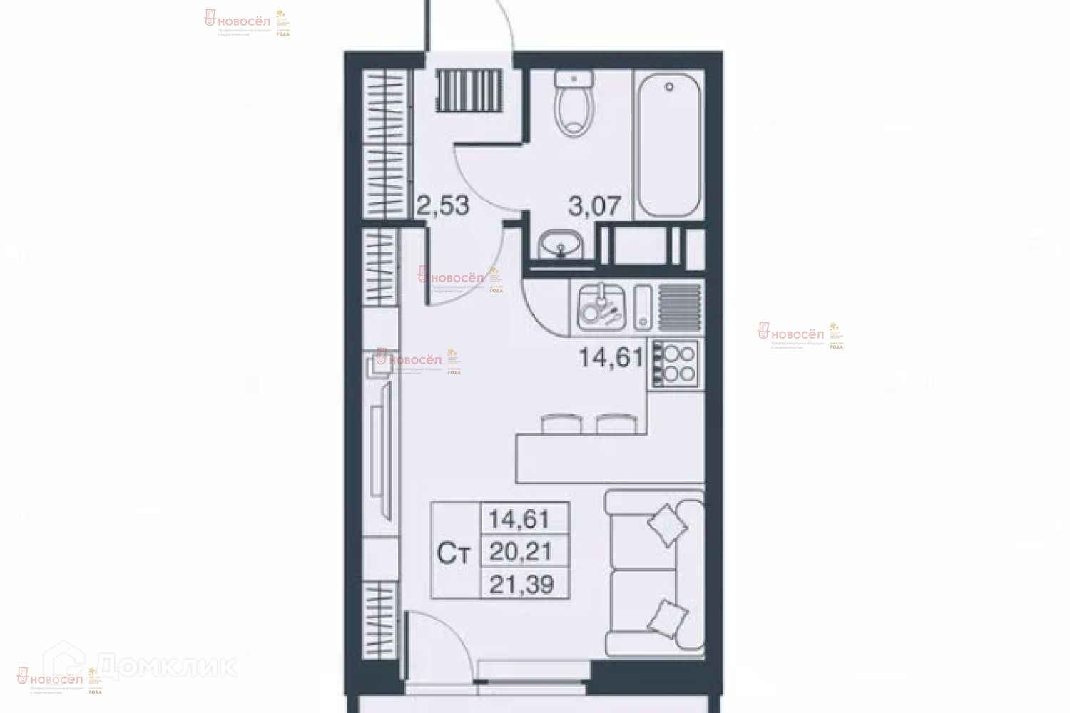 Жилая площадь 22 м2