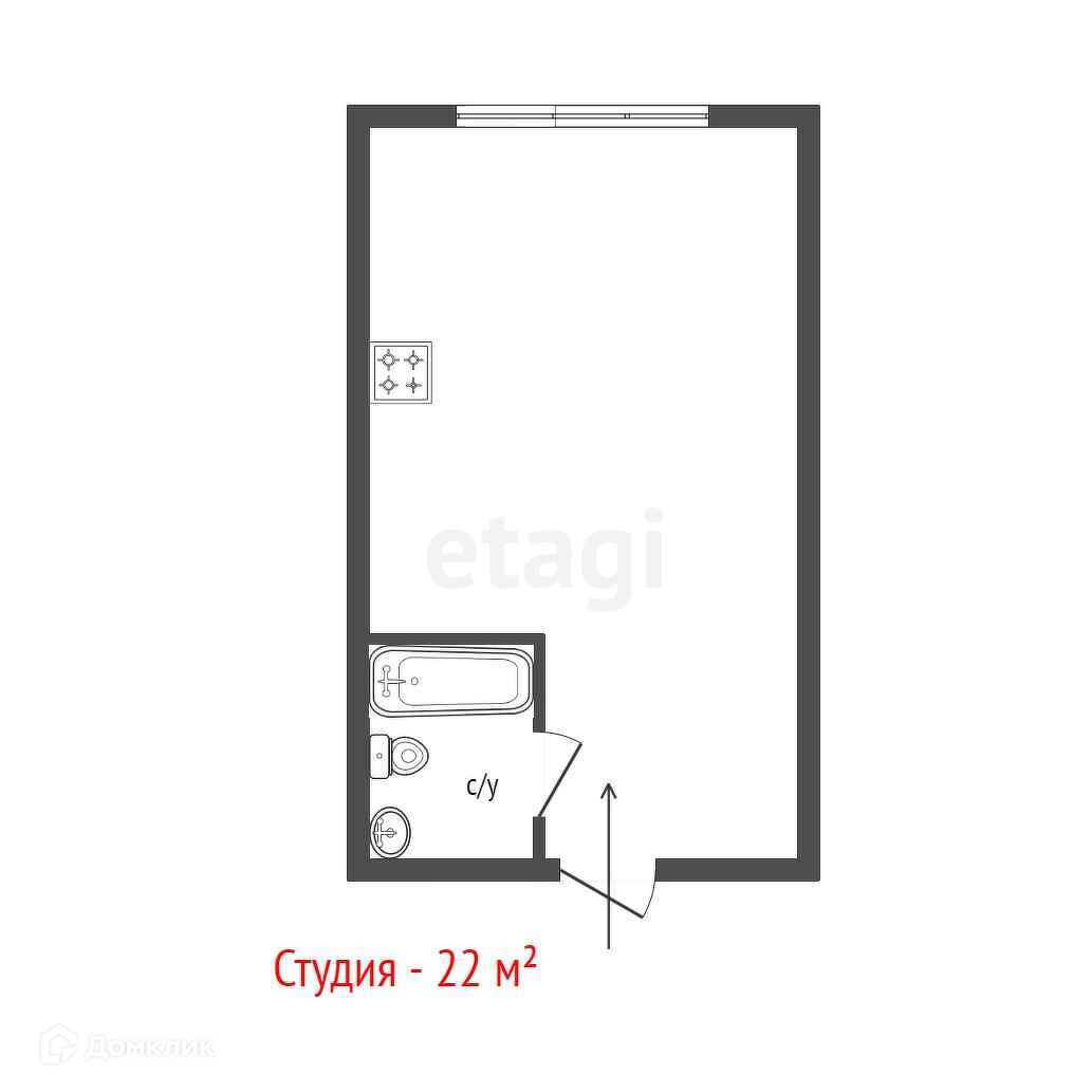 Общая площадь 22 м2