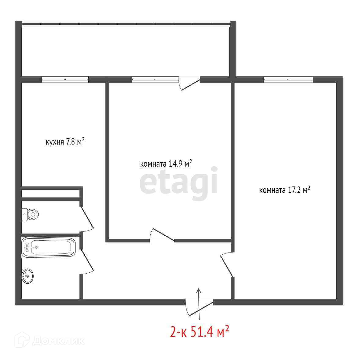 Общая площадь 51.4 м2