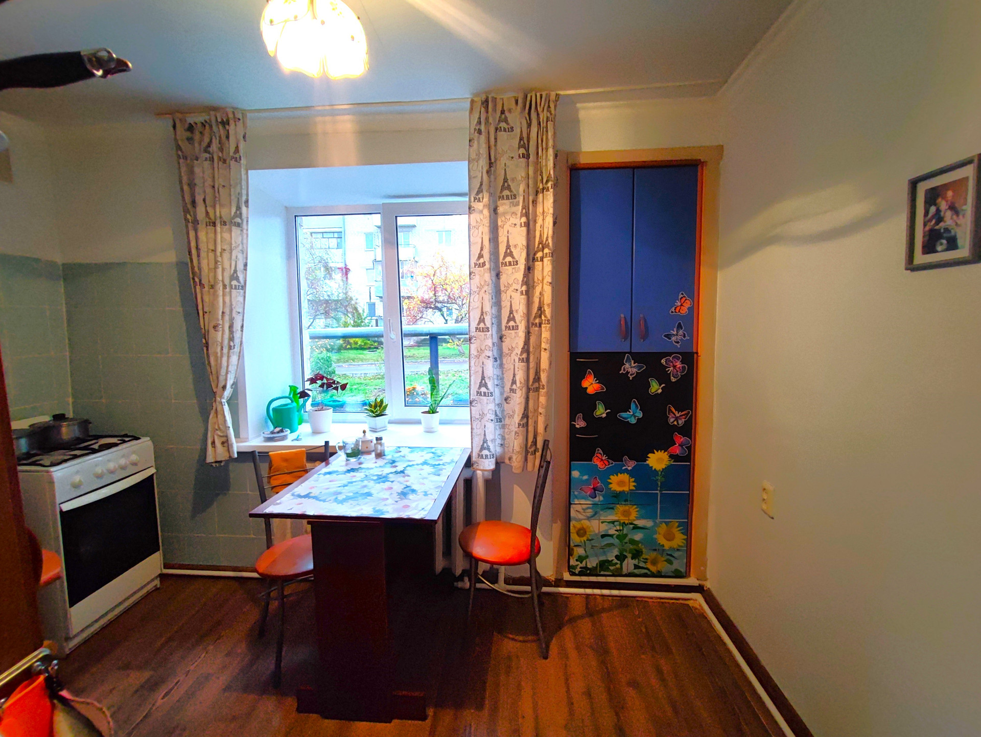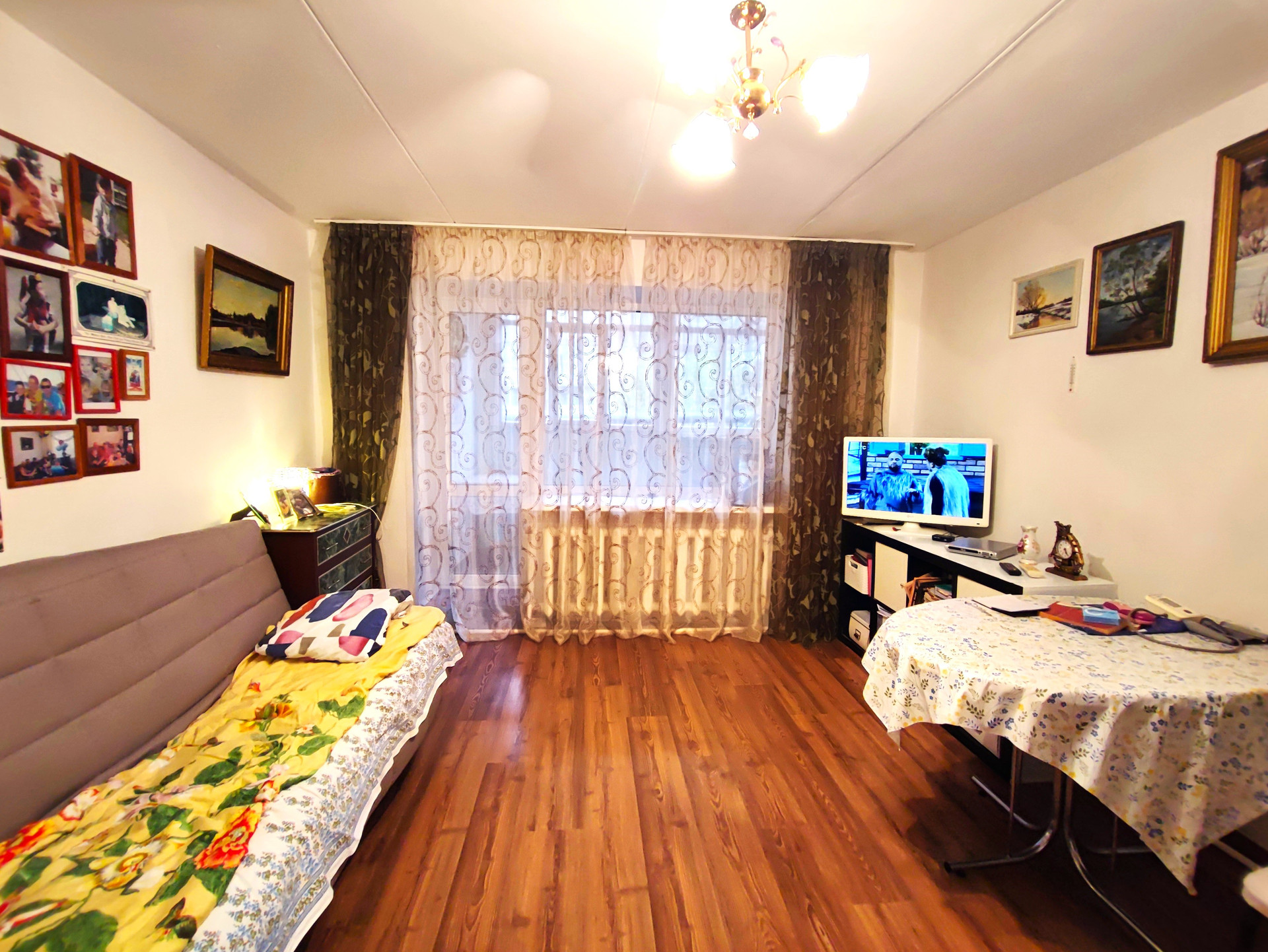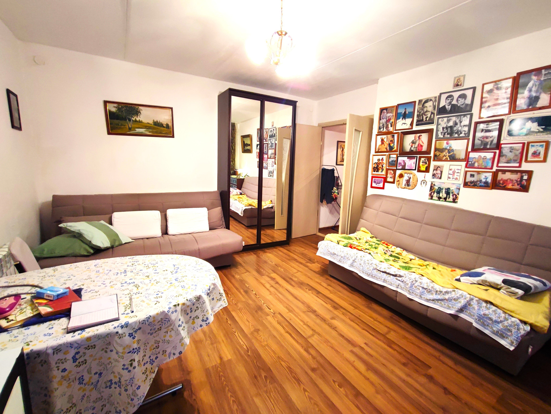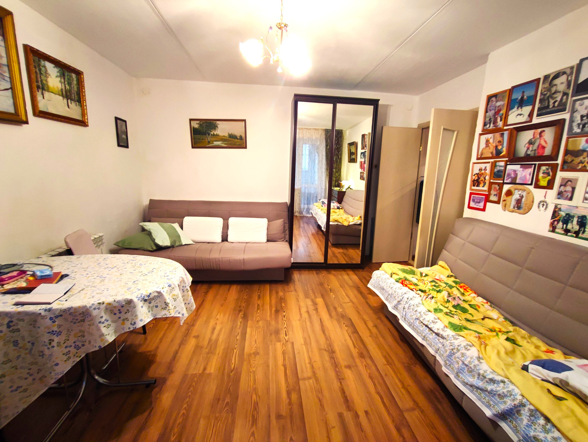 •    Состояние ремонта хорошее: ламинат, новые межкомнатные двери, водонагреватель, санузел в кафеле, в нем сделан теплый пол, газовая плита, сейф дверь.