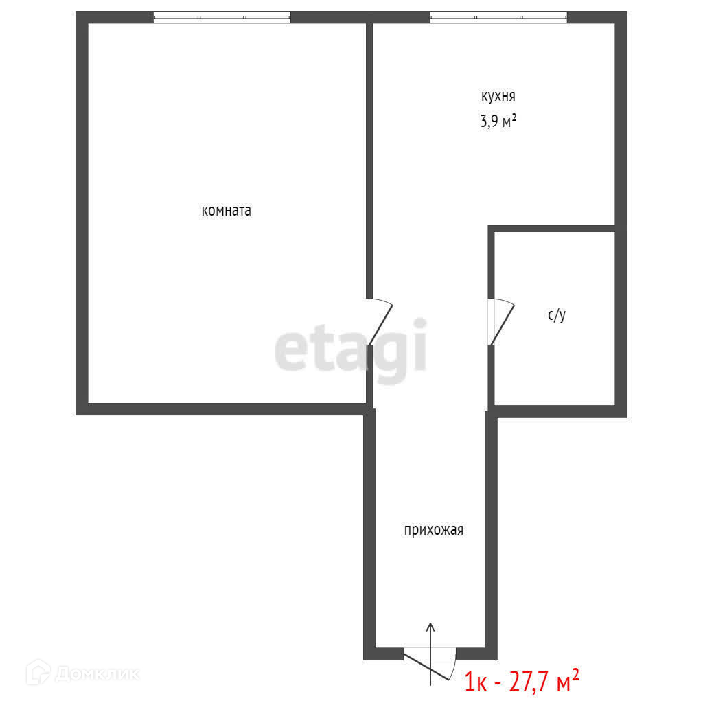 Общая площадь 27.7 м2