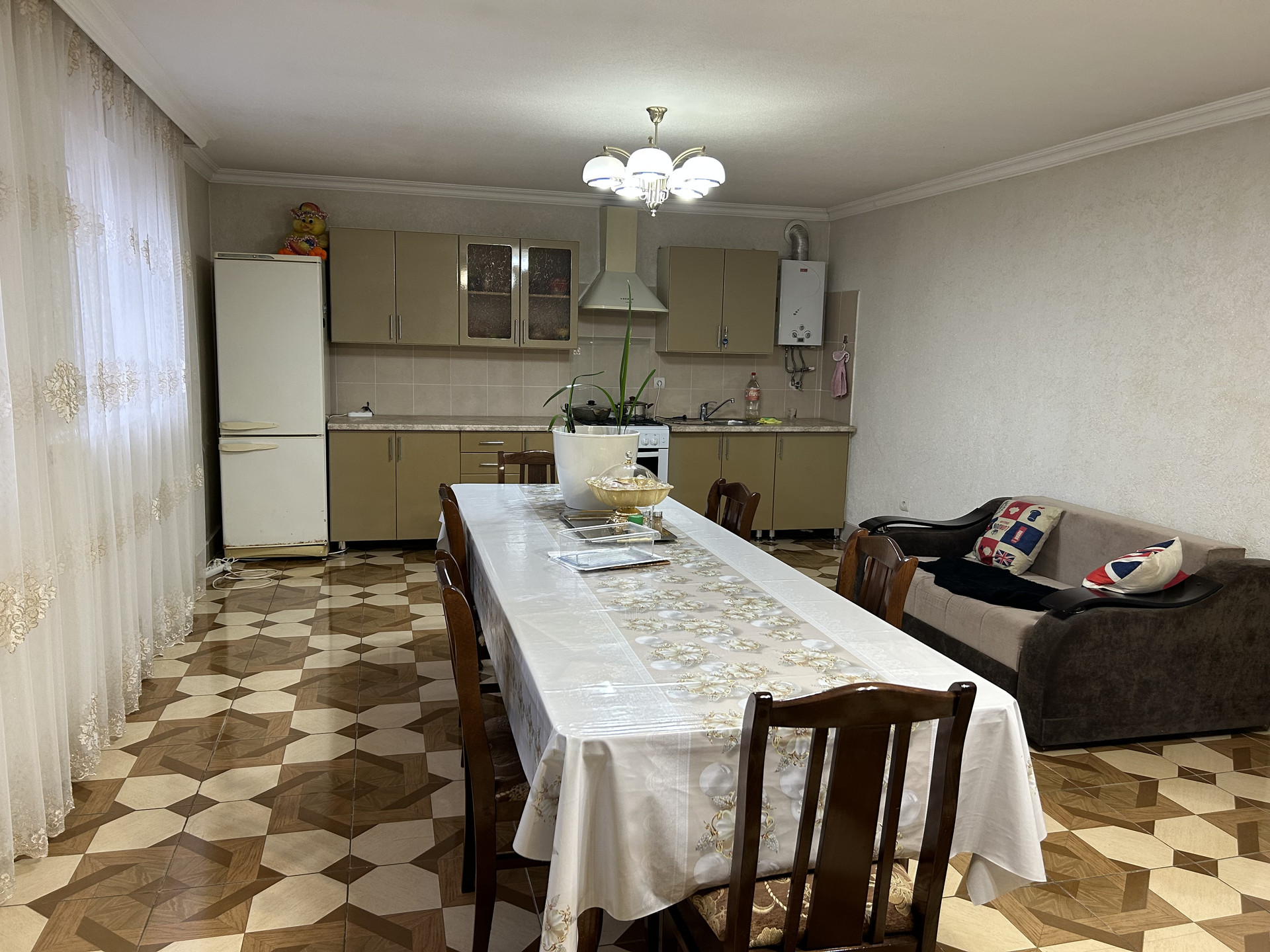 Большая просторная кухня, по всей площади установлены теплые полы.