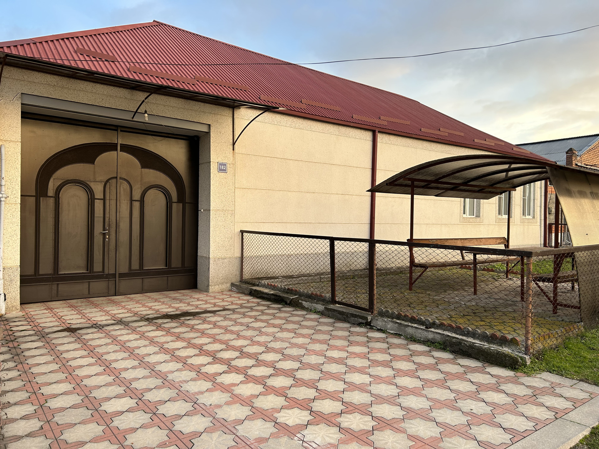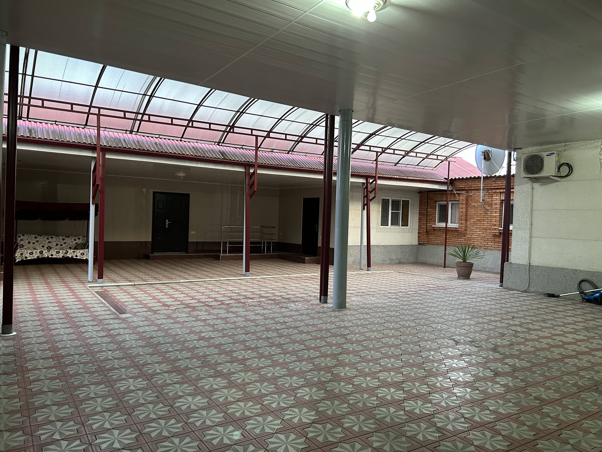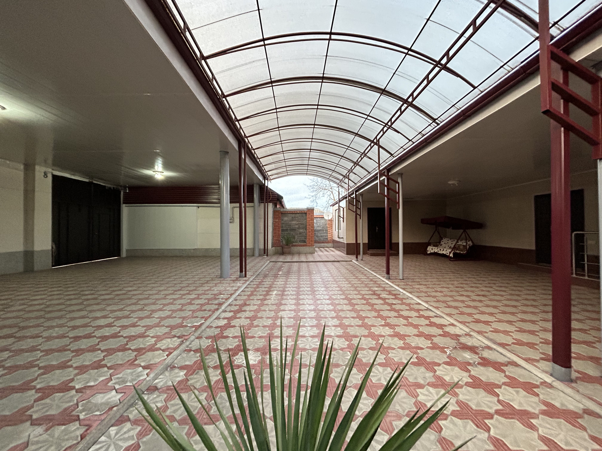 Закрытый двор, в центре двора есть водослив в канализацию, также имеется подвал. На задней части дома есть летняя кухня и большой бассейн.