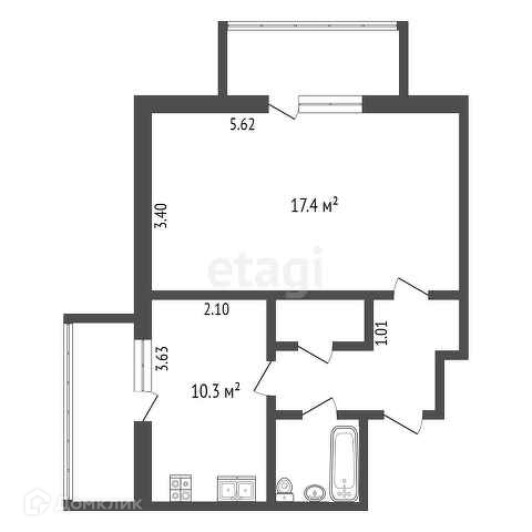 Площадь кухни 10.3 м2
