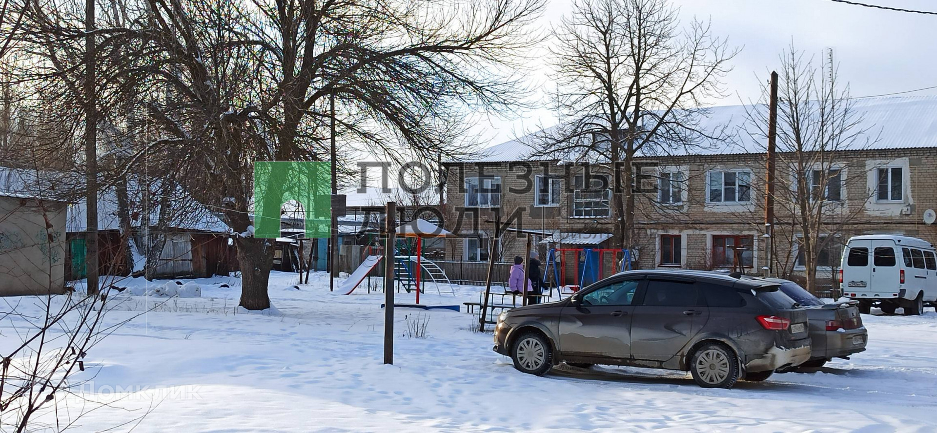 На территории ухоженного двора - детская площадка.