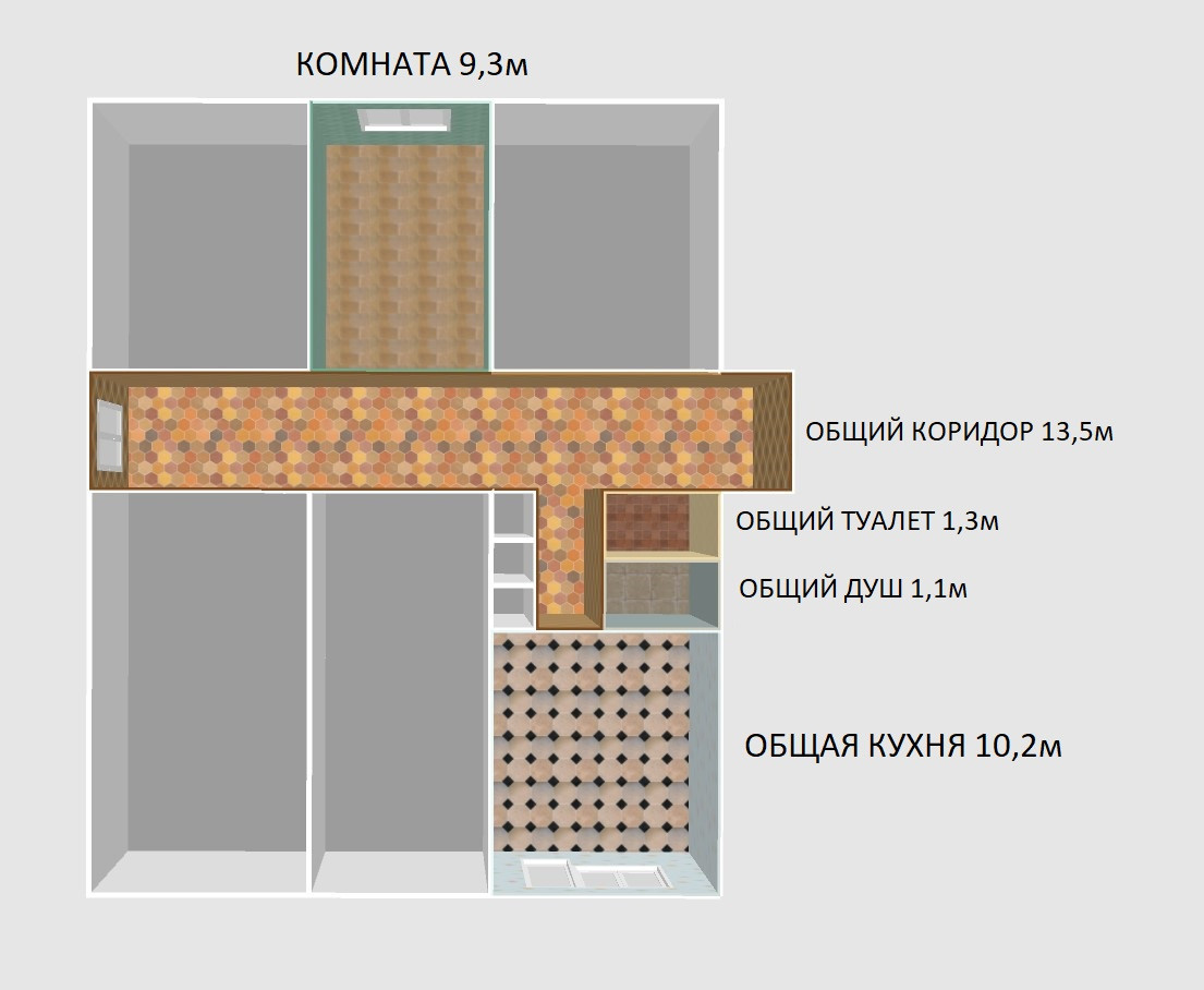 В КВАРТИРЕ имеется общий душ, общий туалет и общая кухня.