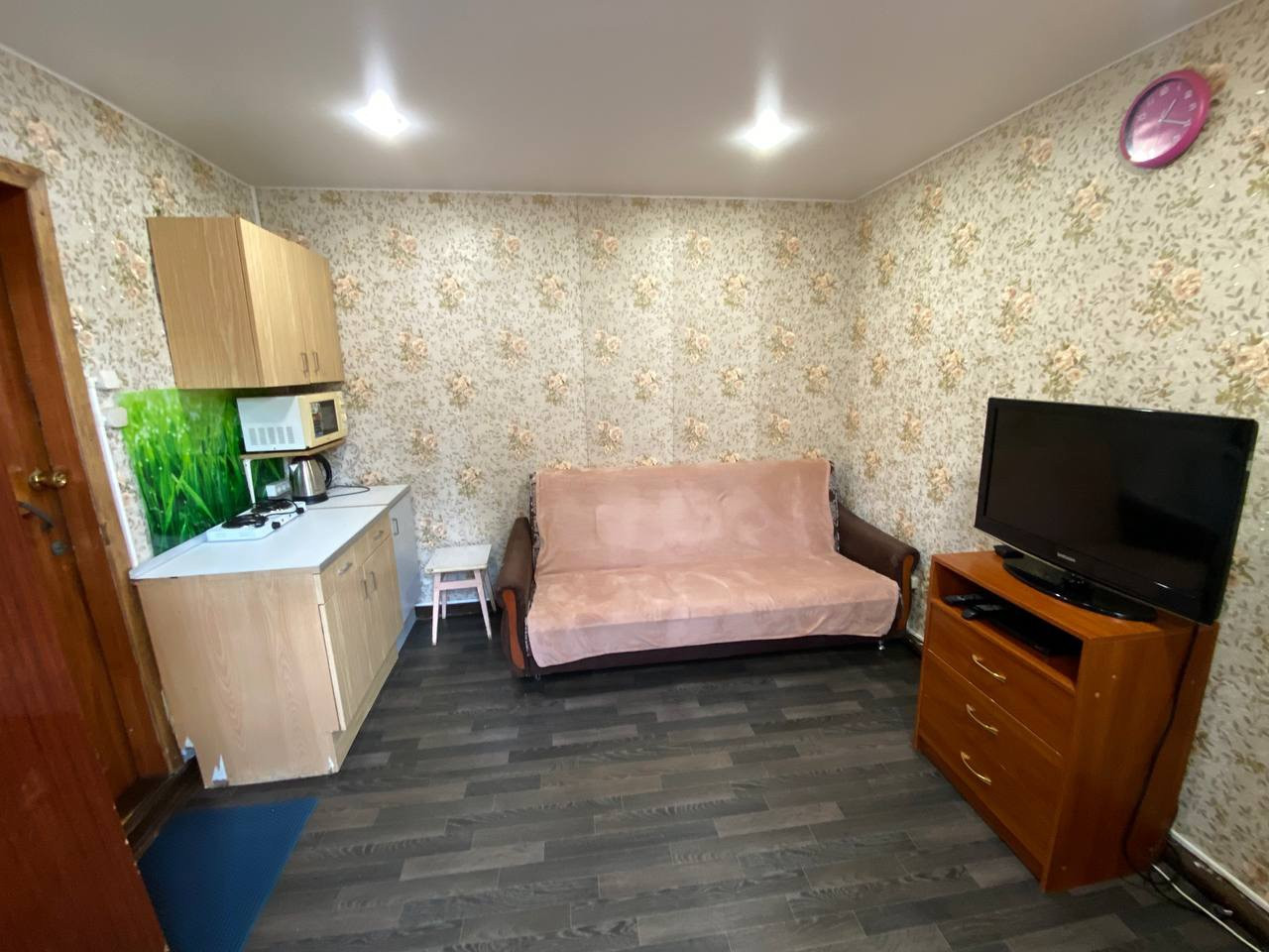 Остается вся мебель и техника: холодильник, стиральная машина, микроволновая печь, плита, телевизор, чайник.