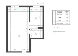 Общая площадь: 32 м2