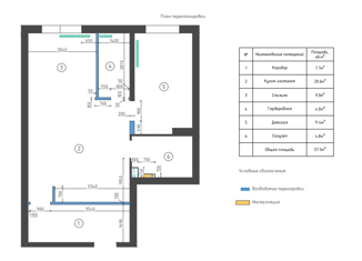 Общая площадь: 55 м2