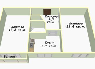 Трехкомнатная квартира на продажу, 51.7 м2, Целлюлозная улица, 20
