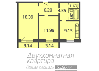 Общая площадь: 53.5 м2