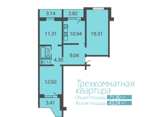 Общая площадь: 71 м2