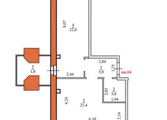 Продаю двухкомнатную квартиру, 36.22 м2, Советская улица, 4