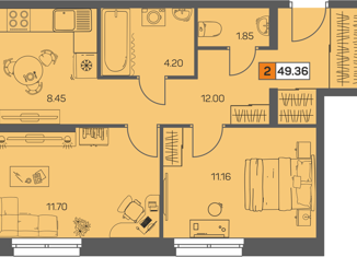 Общая площадь: 49.36 м2