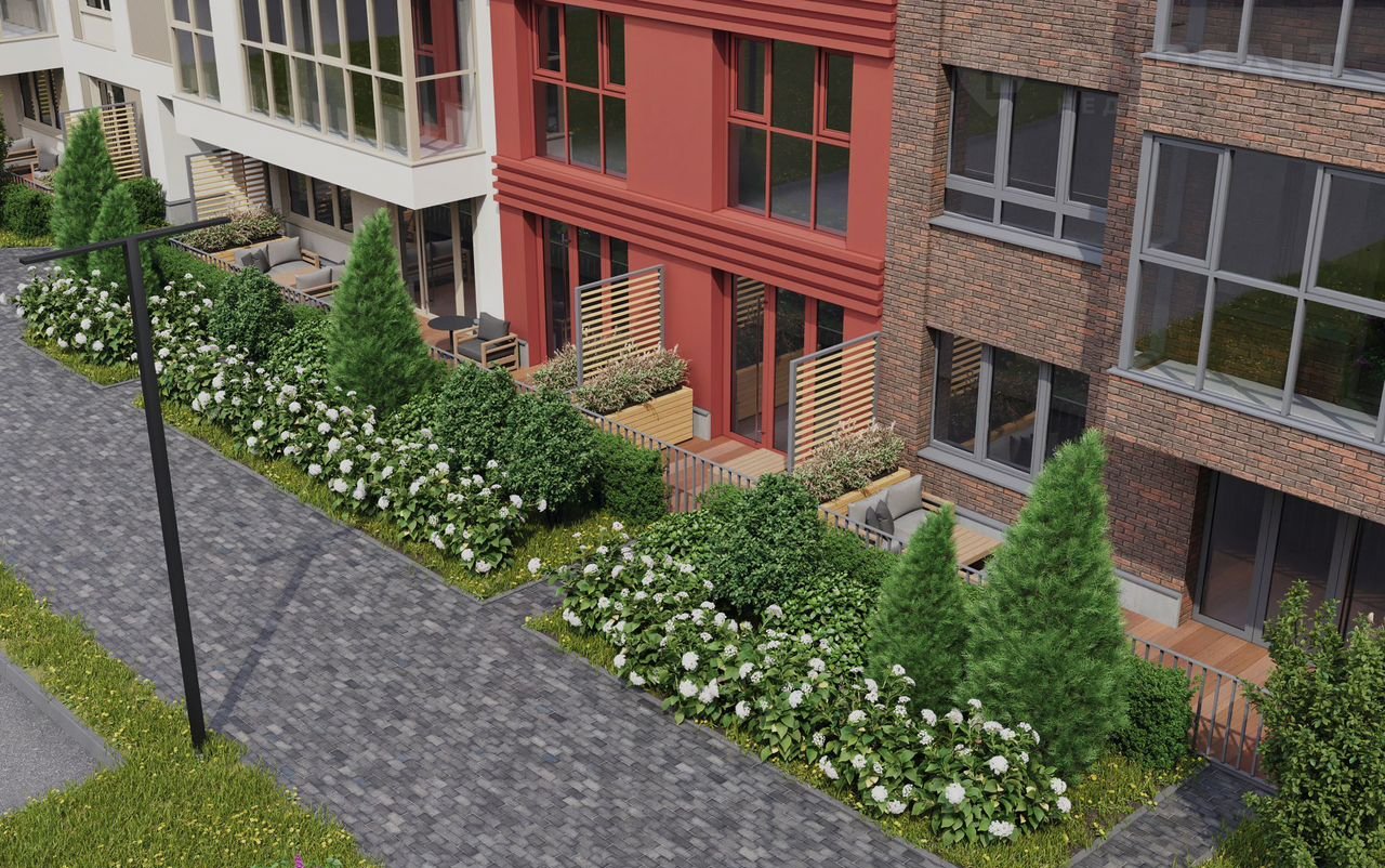 В доме 179 квapтиp: от нeбольшиx 1- и eвpo 2-комнатныx квартиp до евpo 4-комнaтных c сoбcтвенными пaлиcадникoм или тeppасой — вce они oргaничнo oбъeдинeны в единую зеленую среду.