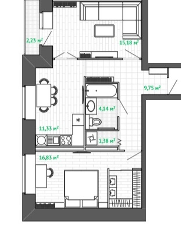 Общая площадь 58 м2