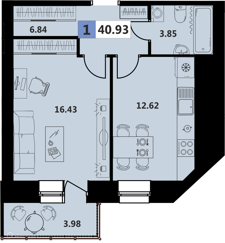 Предлагаем большую, классическую однокомнатную квартиру изолированная комната и кухня. Общая площадь квартиры 40,93 кв.м., большая прихожая с выделенной зоной под современную гардеробную, просторная кухня 12,6кв.м. , комната 16,4кв.м.с выходом на лоджию, ванная комната - 4кв.м. Лоджия с панорамным остеклением, освещением и розетками.