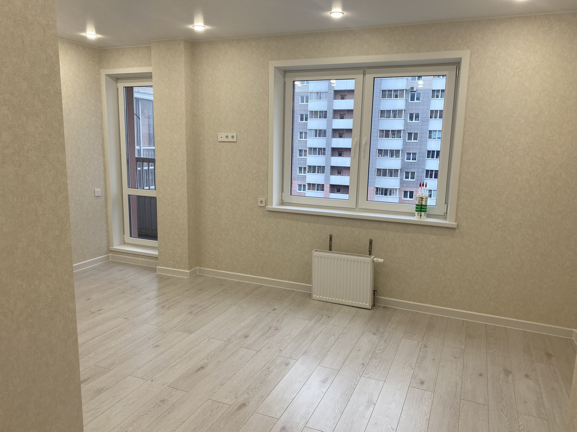 -по всей квартире сделана сухая стяжка пола, это ровные полы , и на чистовое покрытие положен ламинат.