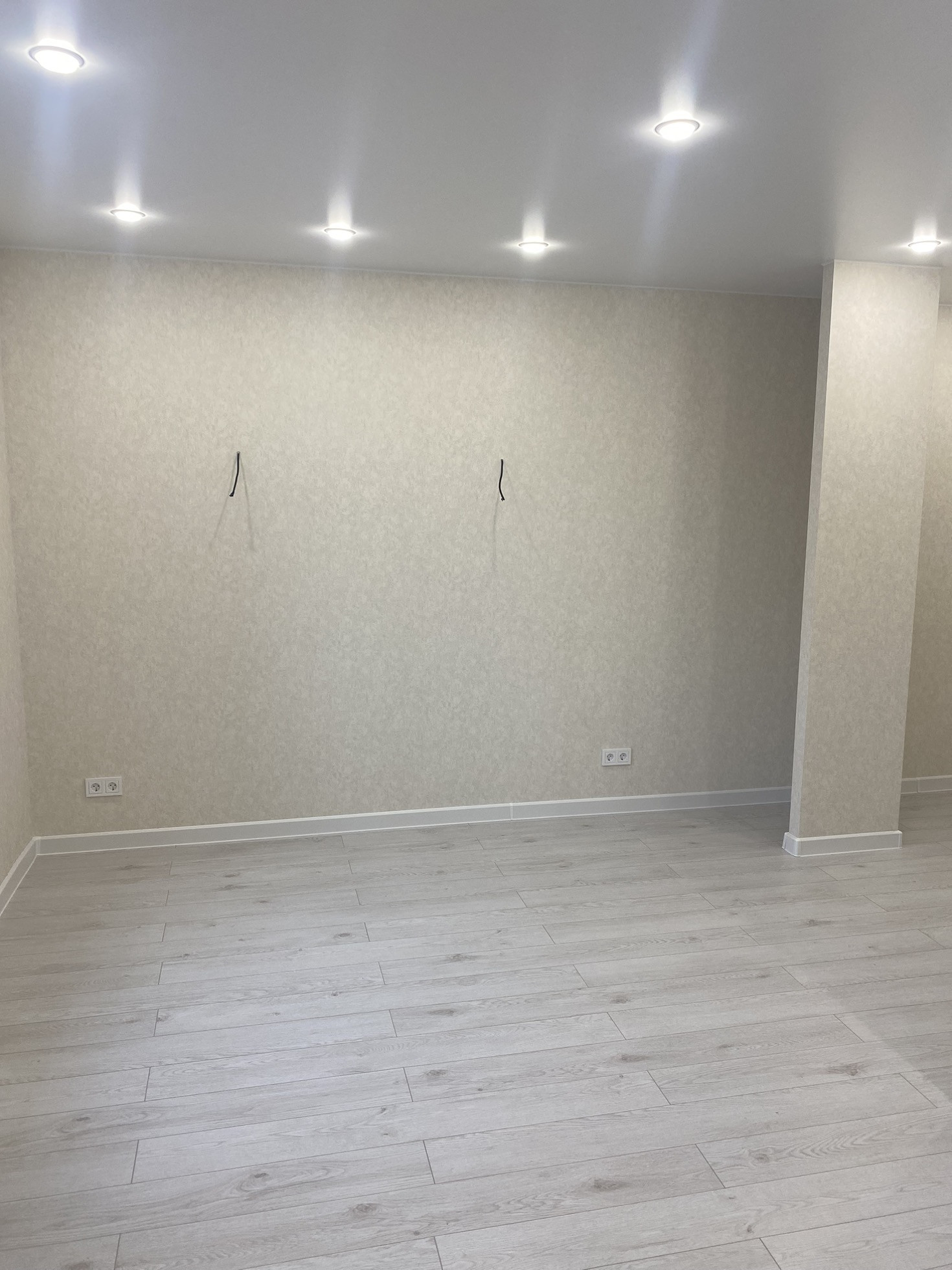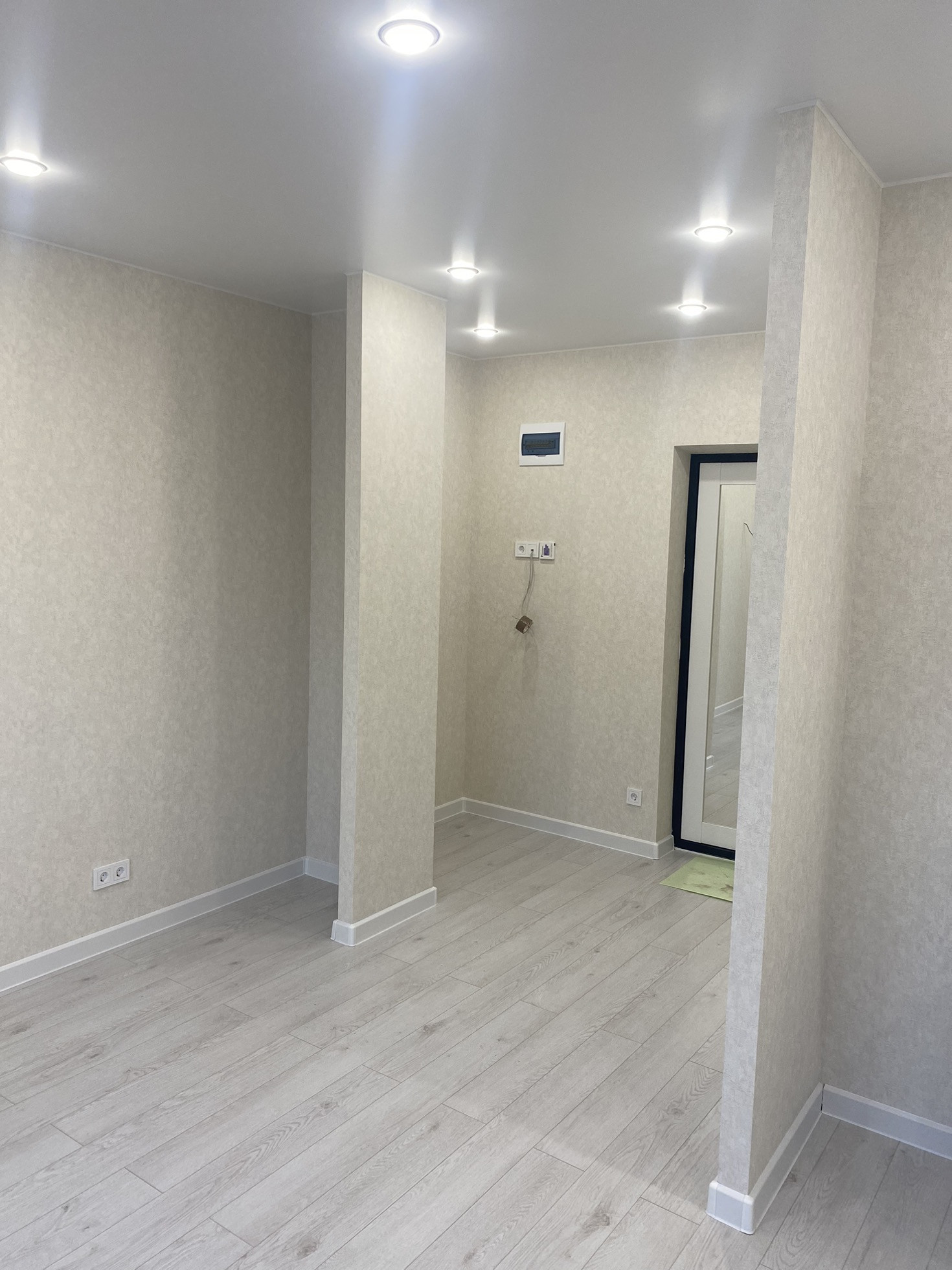 -вся новая электропроводка, выключатели и розетки установлены.
