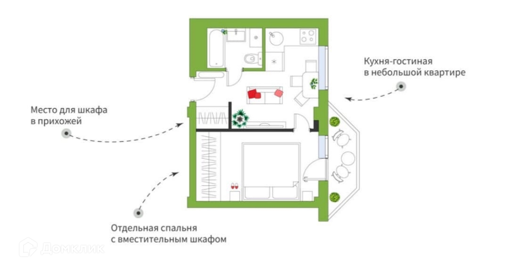Жилая площадь 23 м2