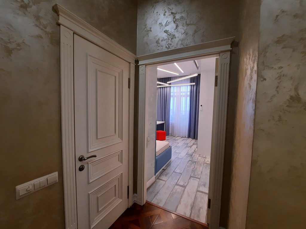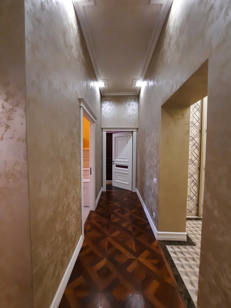 - Отделка стен - декоративная итальянская штукатурка,  полы - керамогранит, натуральный паркет,  ламинат.