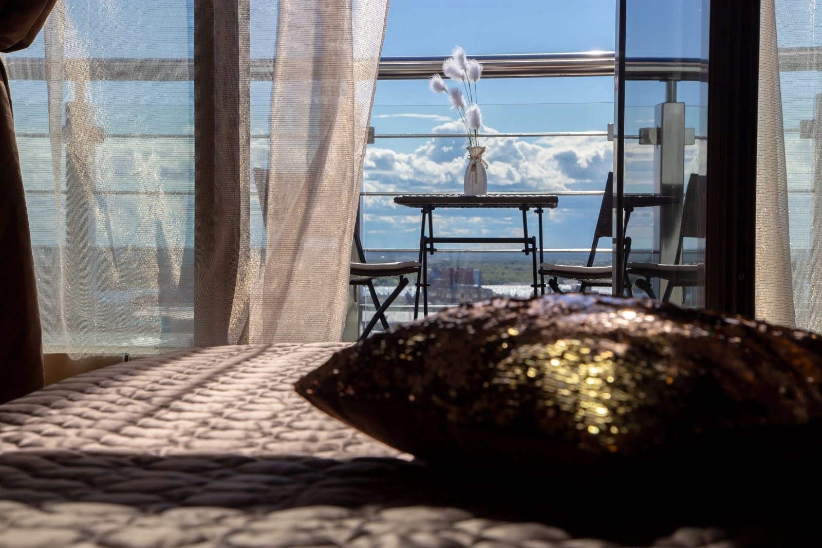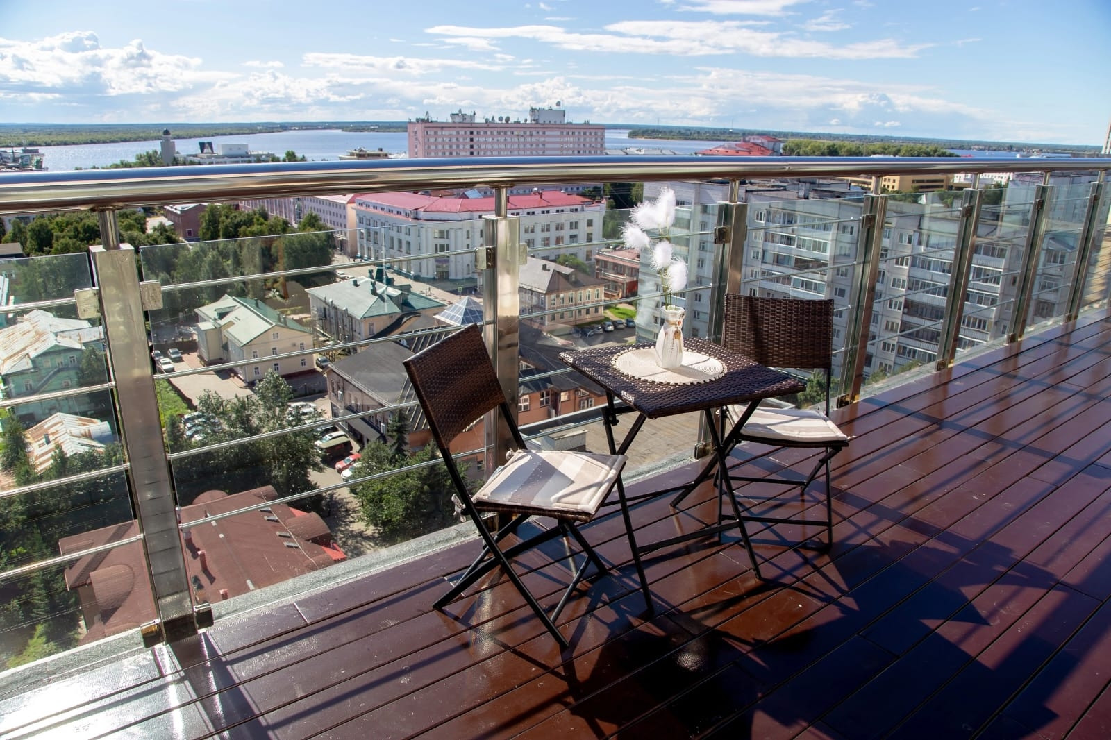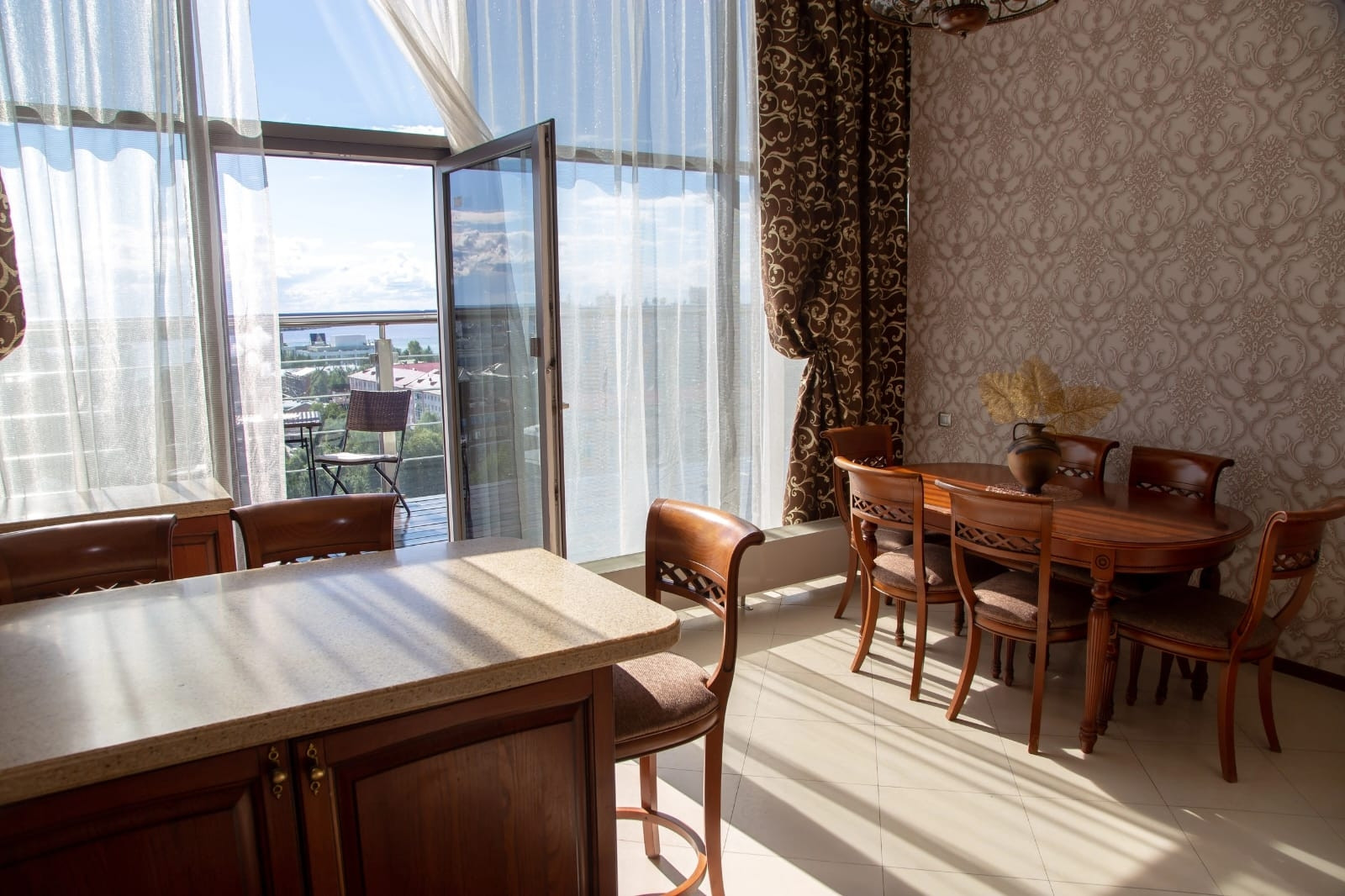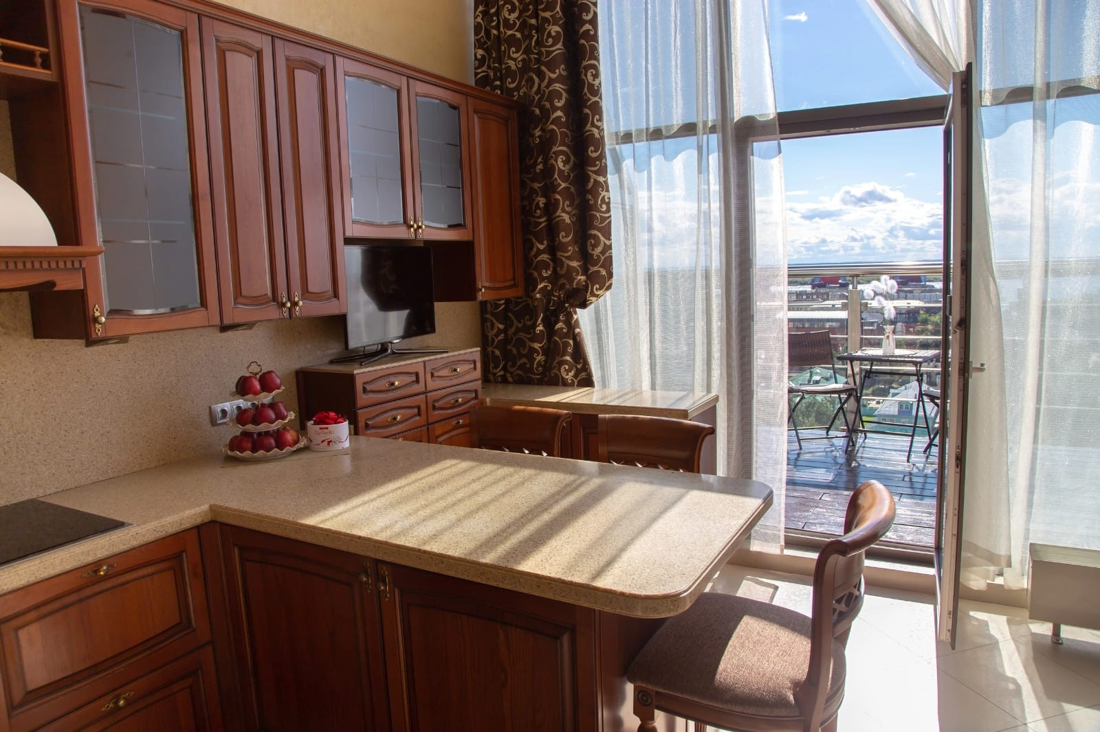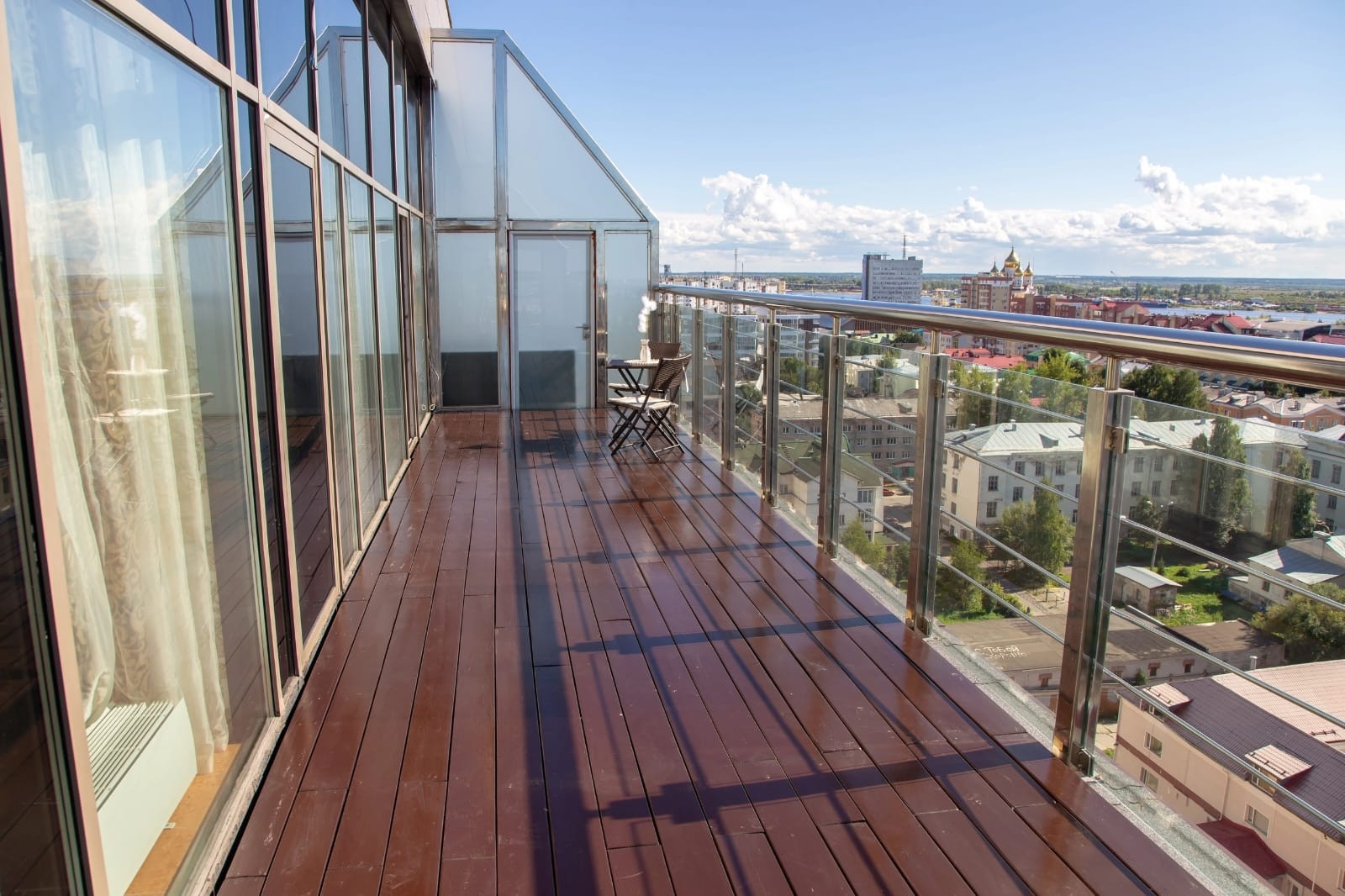 Изюминкой этой квартиры является веранда 39,9 кв.м., выход на нее из двух комнат и из кухни.Веранда имеет надежное ограждение. Здесь летом детишки катались на самокатах, плескались в надувном бассейне, а взрослые наслаждались рассветами, закатами и праздничными салютами.