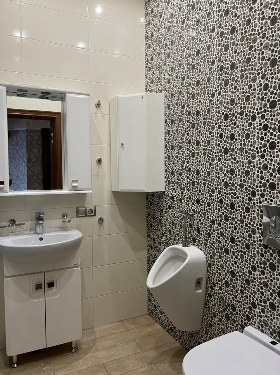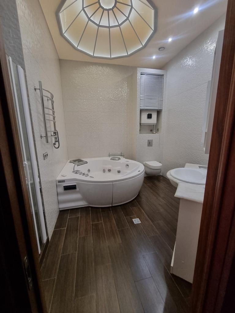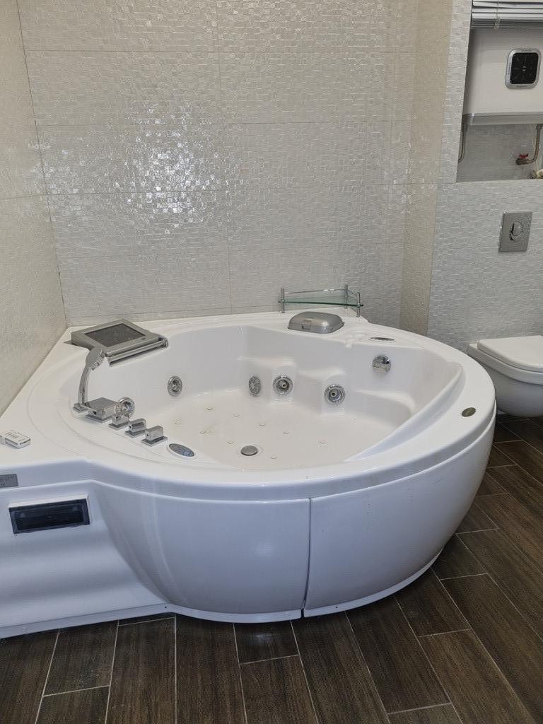 В квартире оборудованы три санузла, вспомогательное помещение, которое можно использовать как прачечную-гладильную или обустроить уголок для питомца и т.д.