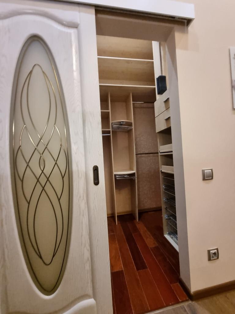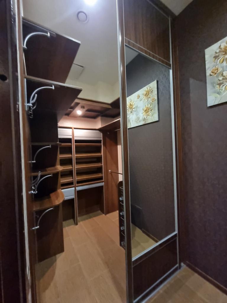 Квартира имеет не ординарную планировку. Можно приобрести ее с целью перепланировки на две полноценные квартиры. Квартира оснащена тремя вместительными и функциональными гардеробными(здесь можно разместить не только одежду и личные вещи, но и спортивный инвентарь и атрибуты путешественников-большие чемоданы).